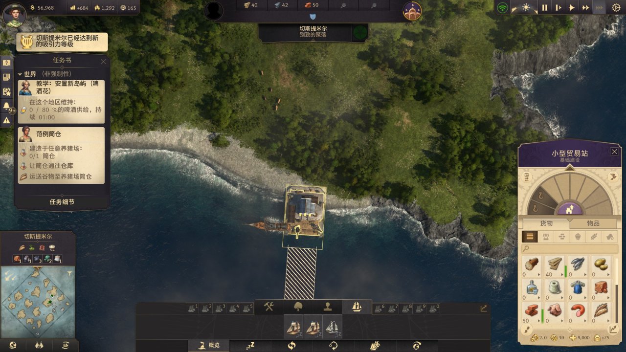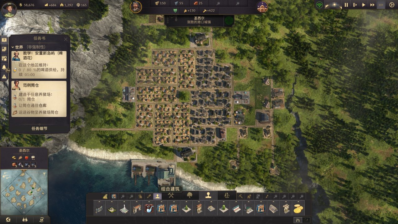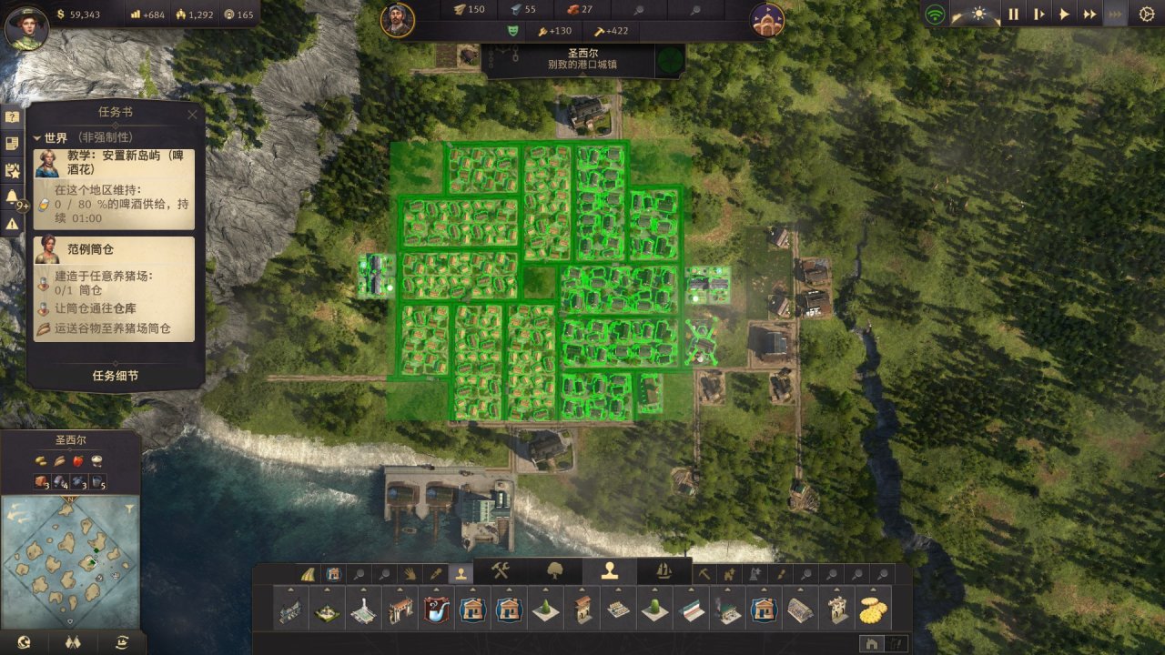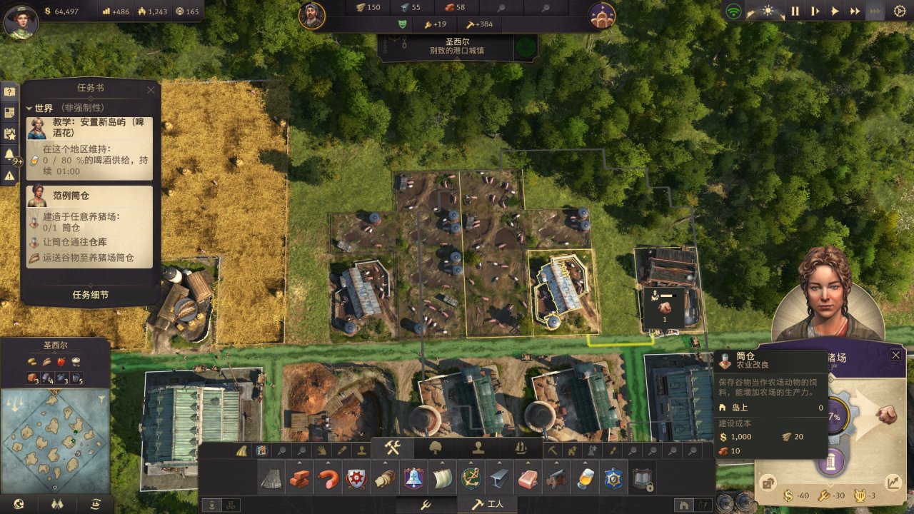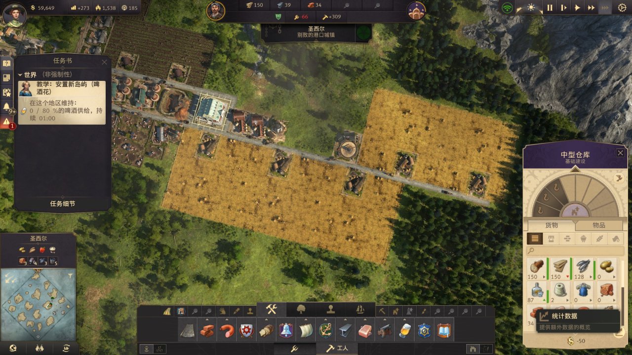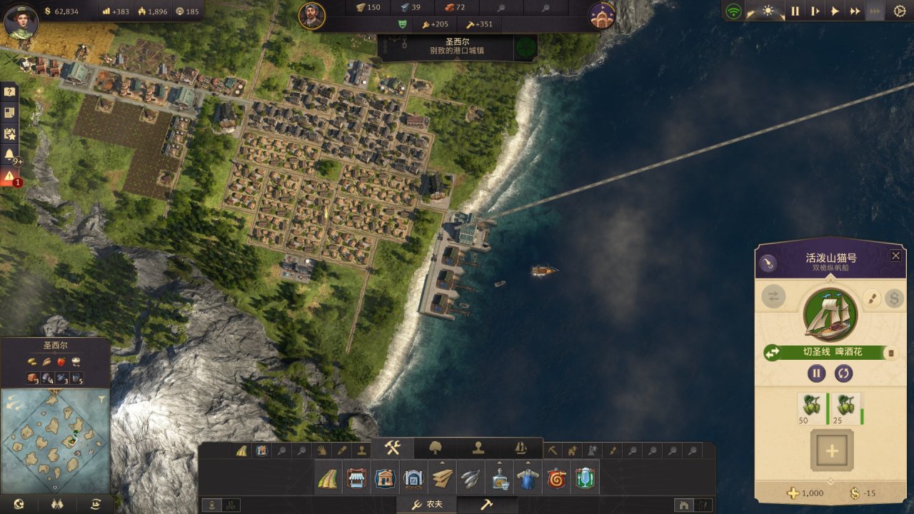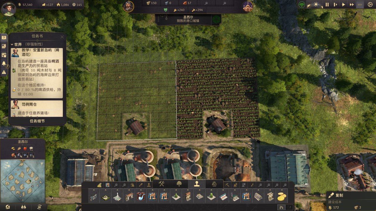 這時候我們看一下居民的幸福度需求,發現還缺烈酒、教堂、啤酒,安排!