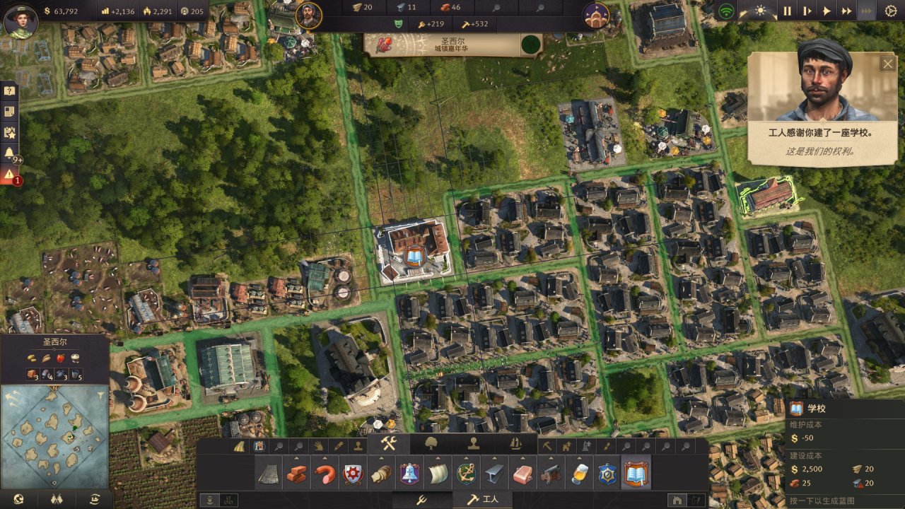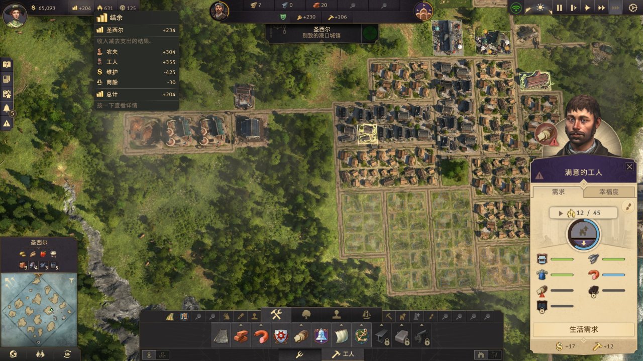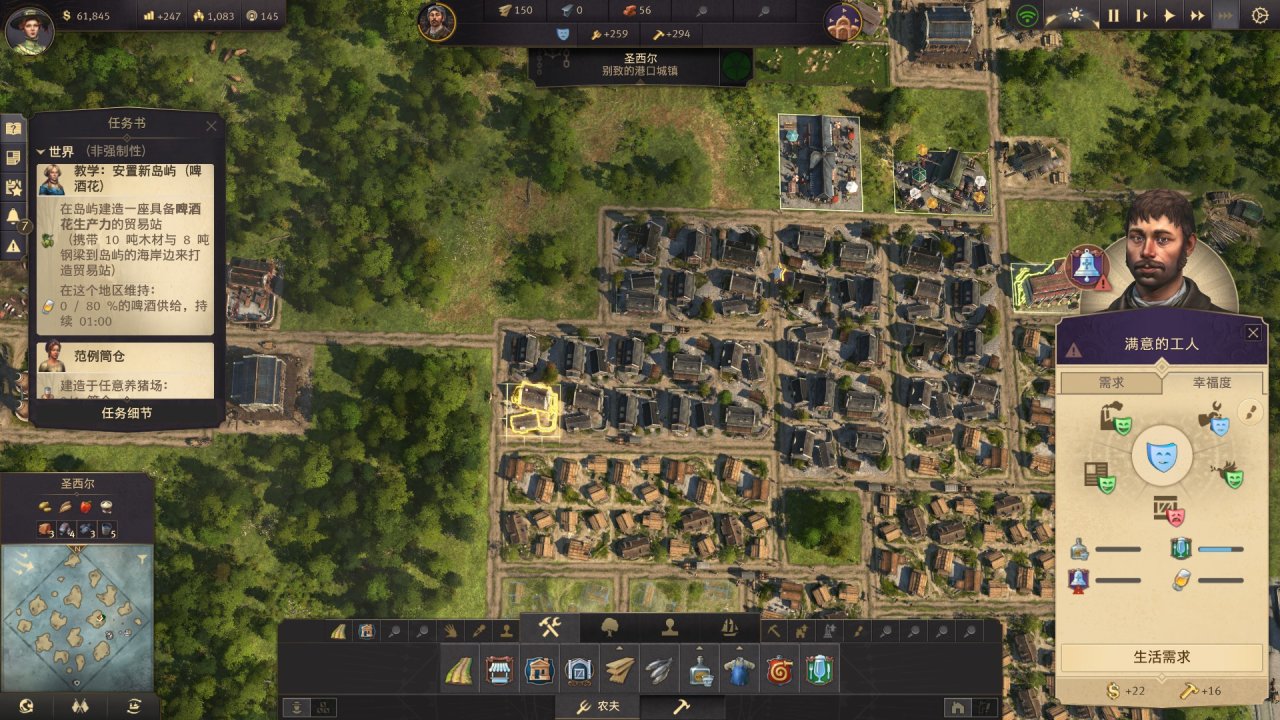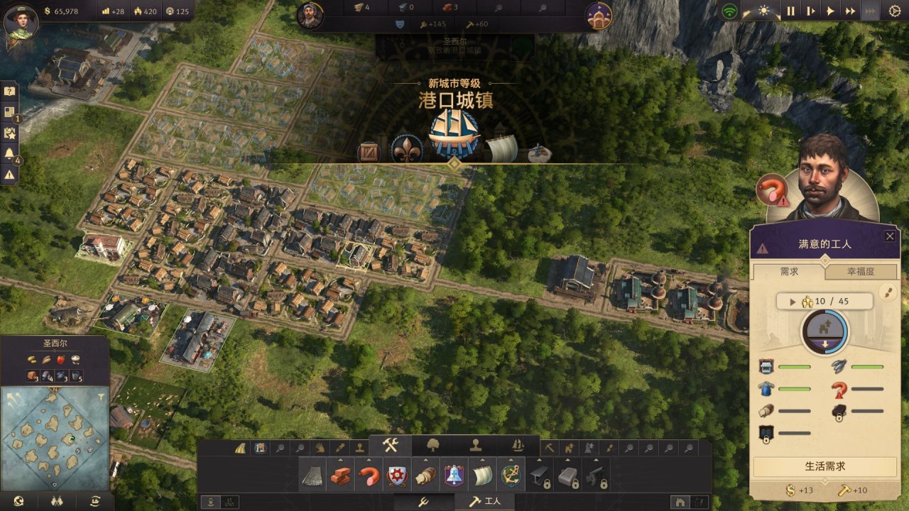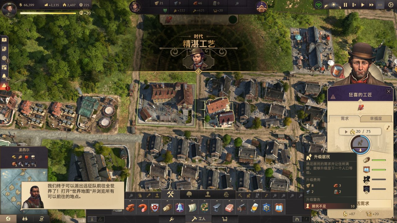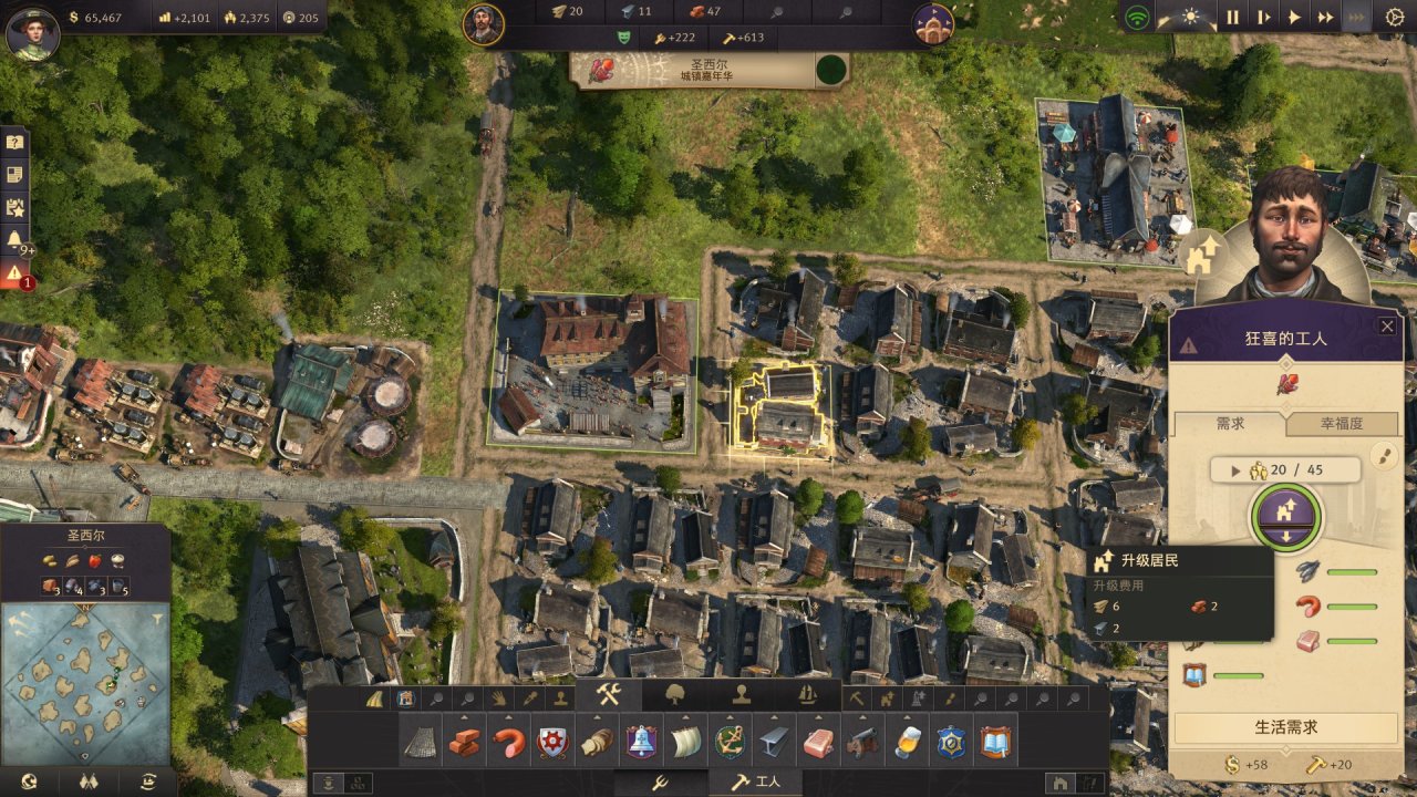 這時候我們再看工人的幸福度已經全部滿足了,接下來準備着手升級到工匠。