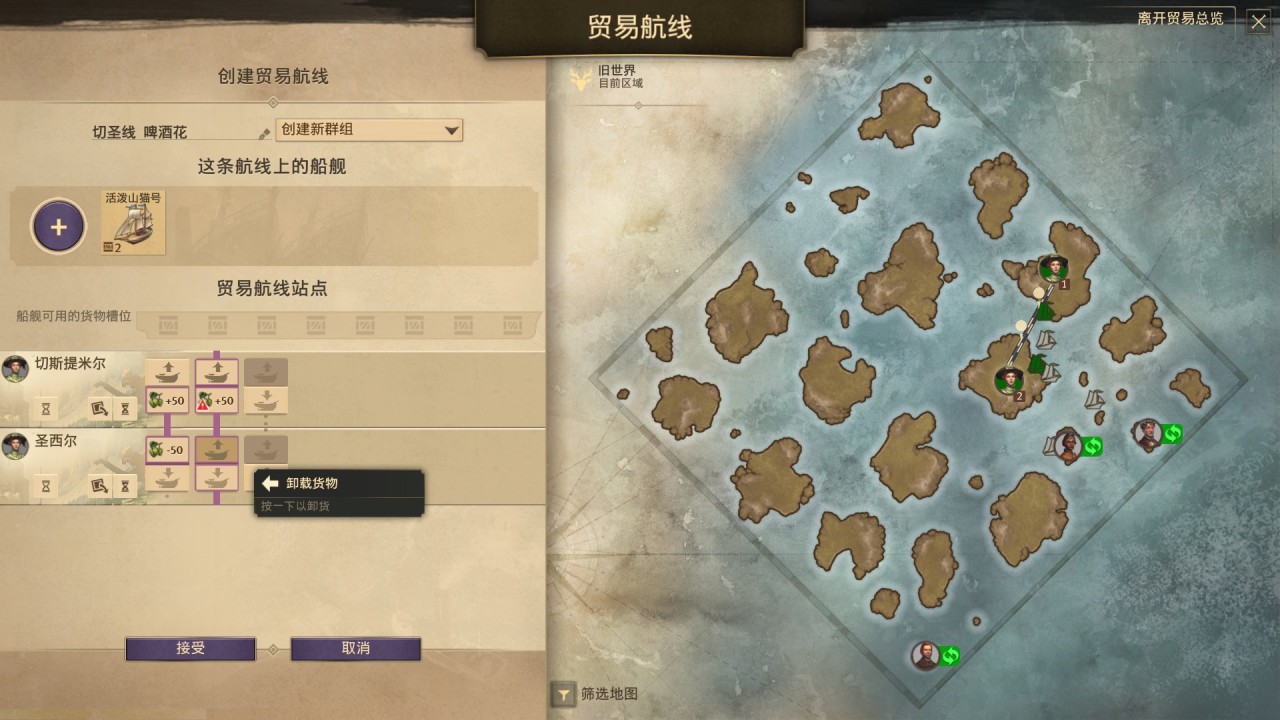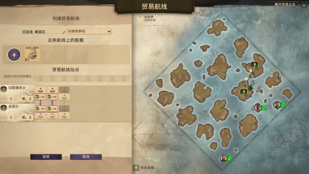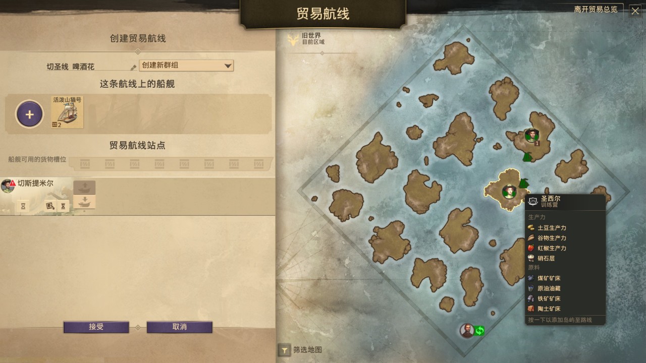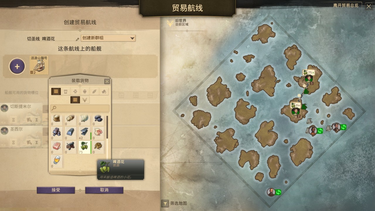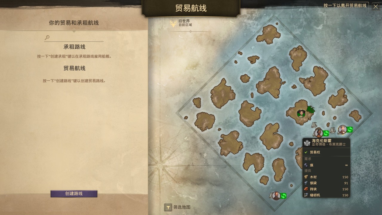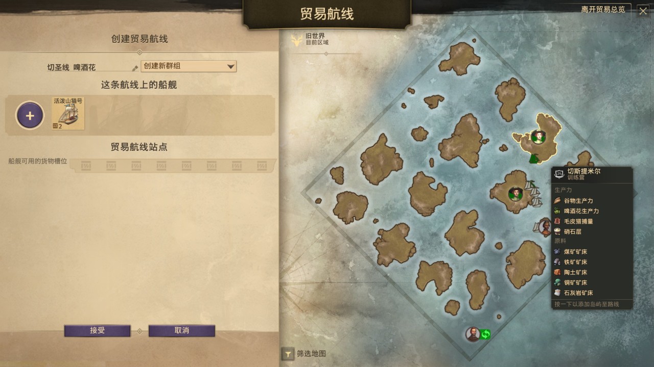 這時候新島的啤酒花也足夠了,我們點擊左下角的路線。