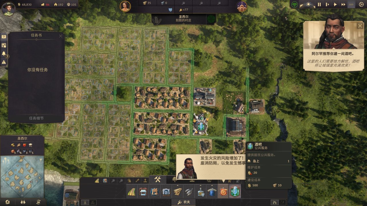 關注一下居民的幸福度需求,我們在旁邊建個酒吧。