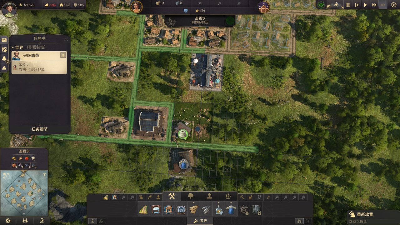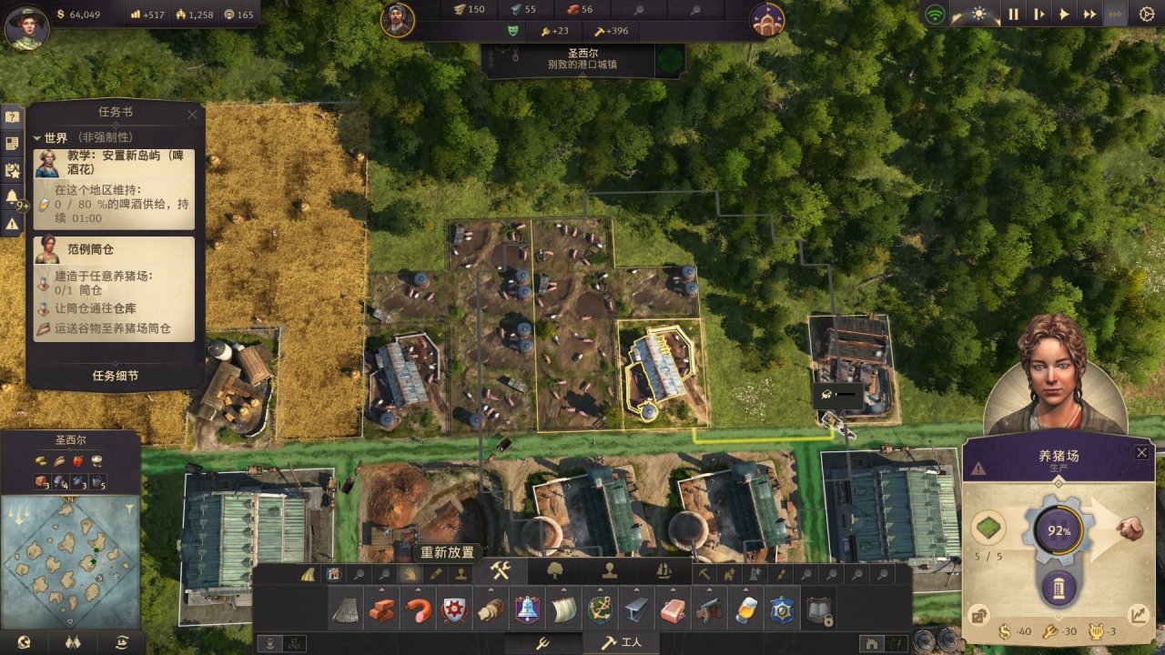 選取重新放置工具,給豬場移動一下位置,給筒倉騰點地方。