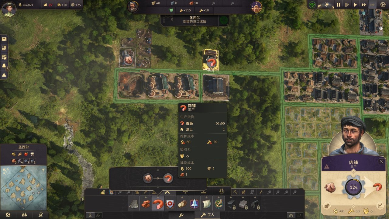 這時候關注一下工人階級的需求,我們會發現還缺少臘腸和麪包供應。