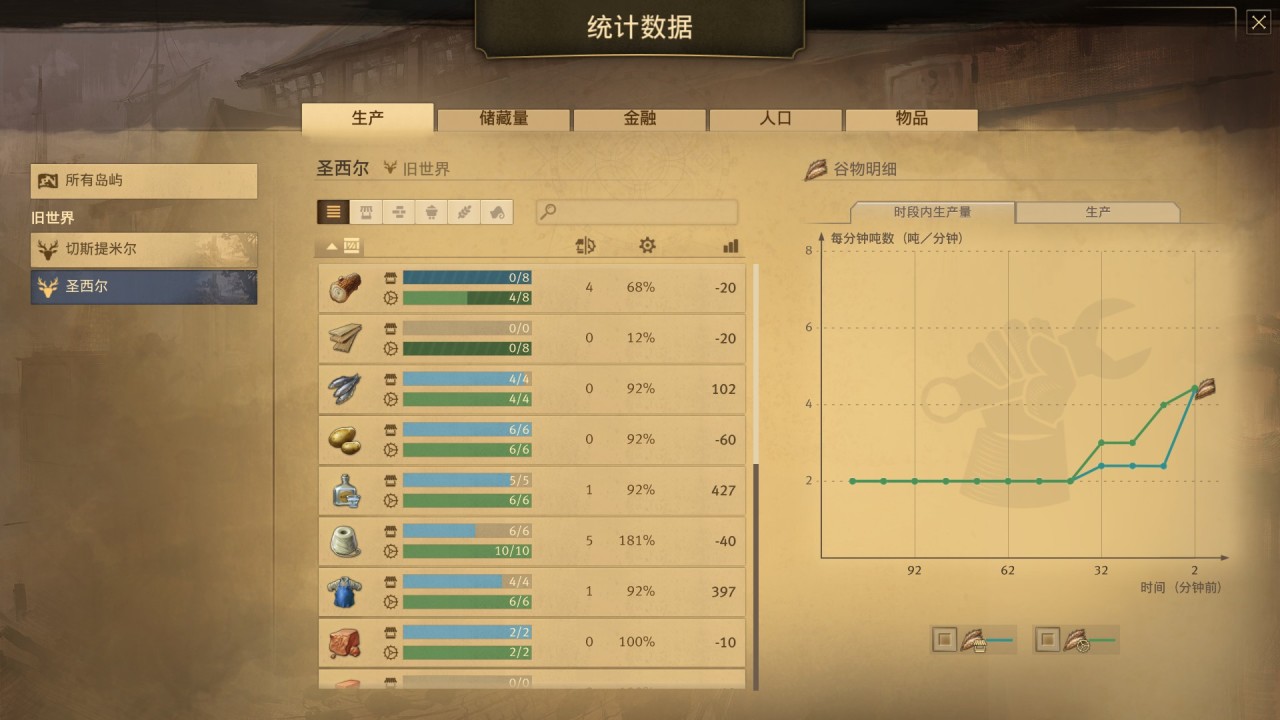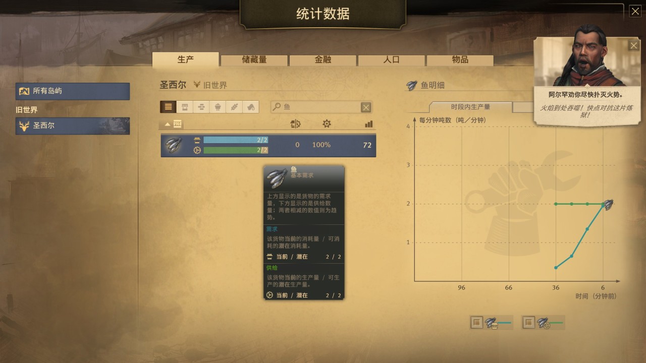 這裏可以看見全島的資源供求,可以看見工作服供應又不夠了,哪裏不夠了就供哪裏,面多加水,水多加面……