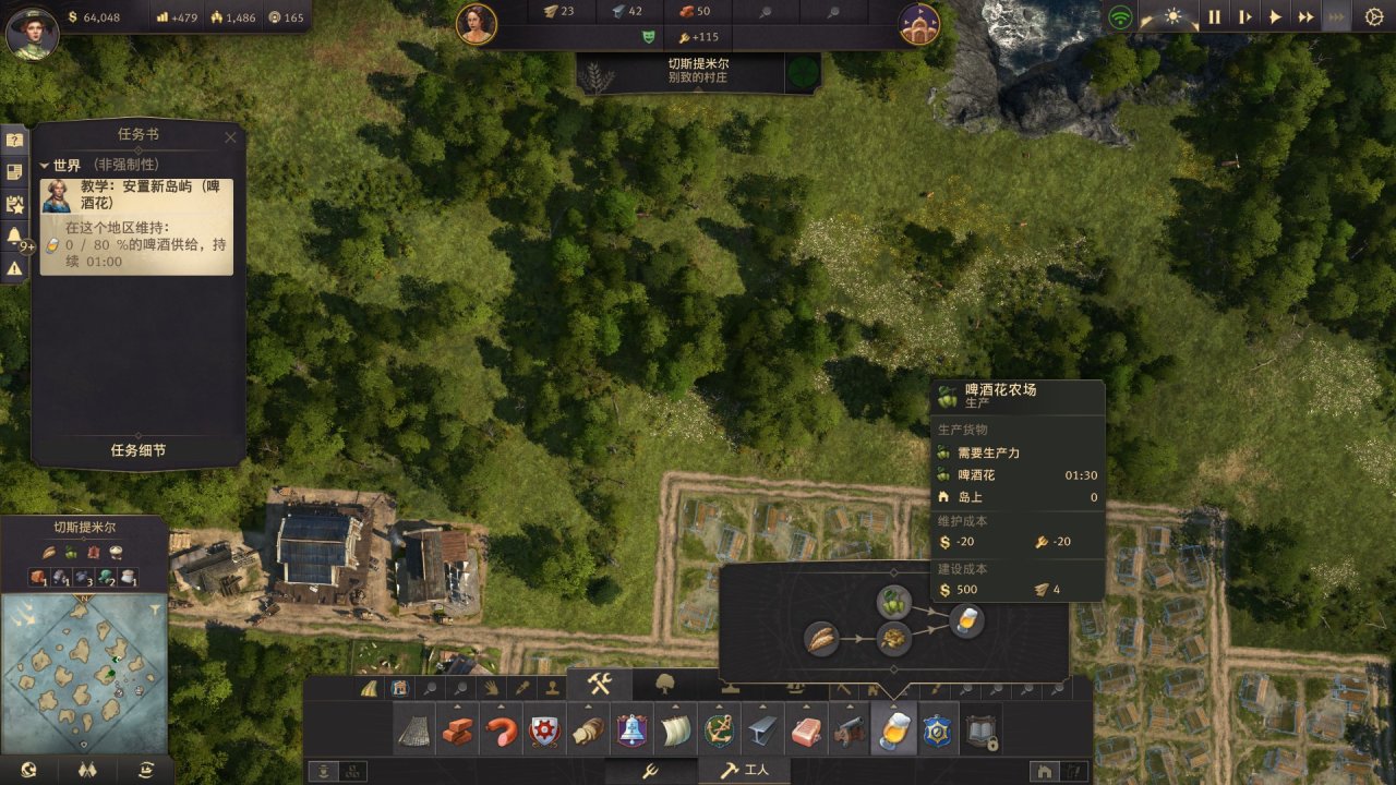 接着帶上木材,鋼樑,磚塊,我們去尋找一個有啤酒花生產力的島嶼。