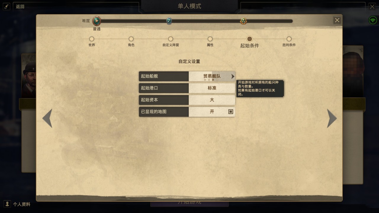 起始船艦這裏選擇指揮艦或者貿易艦隊都可。