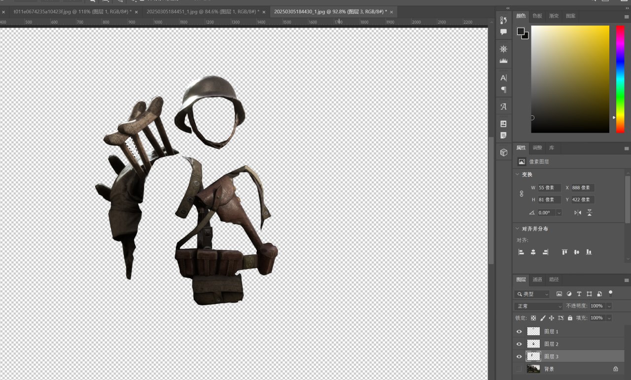 然后将萨尼身上的素材也用同样的方式抠出来。