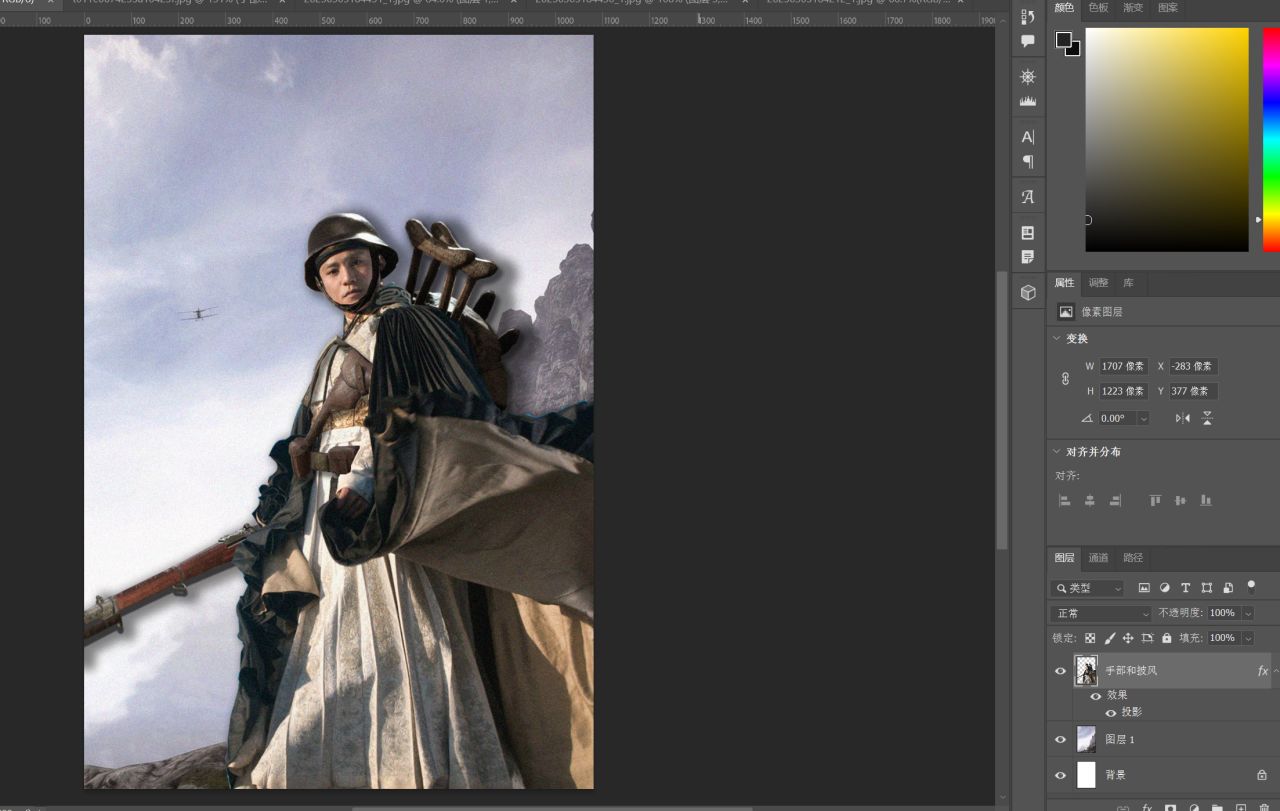 把背景和模特都拉进最开始的那个1080*1600像素的文档里(自己调整位置和色彩,阴影)