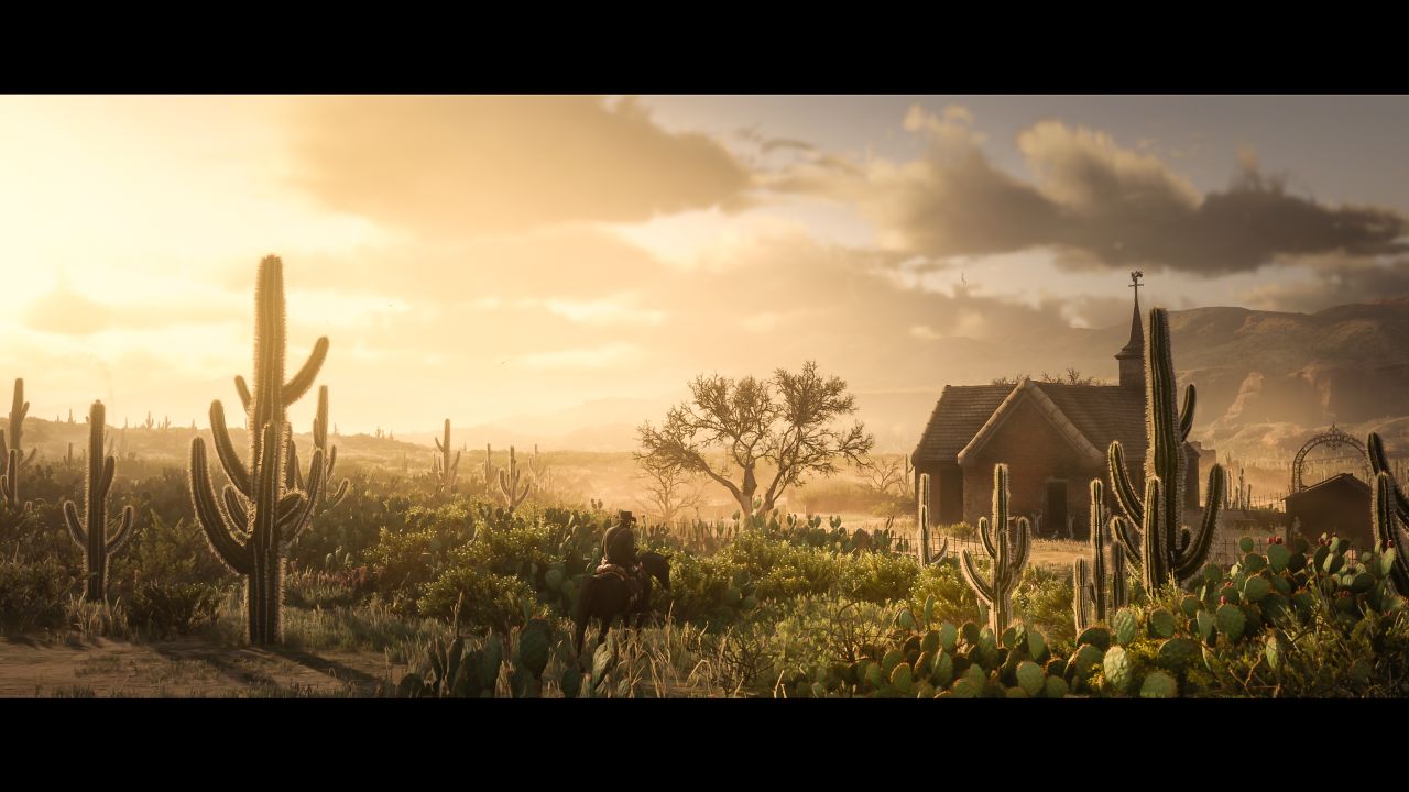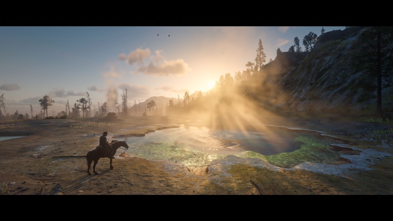 《荒野大镖客:救赎2》的广袤世界是一幅流动的西部史诗画卷。当玩家策马穿越新汉诺威的草原时,晨雾如薄纱般覆上金色草浪,野牛群在远处地平线上化作剪影,蹄声惊起一群振翅的雪鹭,羽翼掠过泛着露珠的苜蓿丛。河谷地带,翡翠色的溪流切割红岩峡谷,赭石色崖壁被千年风雨蚀刻出褶皱,倒影中游弋的虹鳟搅碎阳光,而秃鹫在头顶盘旋的轨迹,与蒸汽火车驶过铁桥的煤烟交织成工业与荒野碰撞的图腾