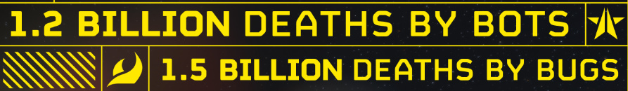 同时,玩家的总死亡次数达28亿次,12 亿次死亡来自机器人、15 亿次死亡来自虫子,
