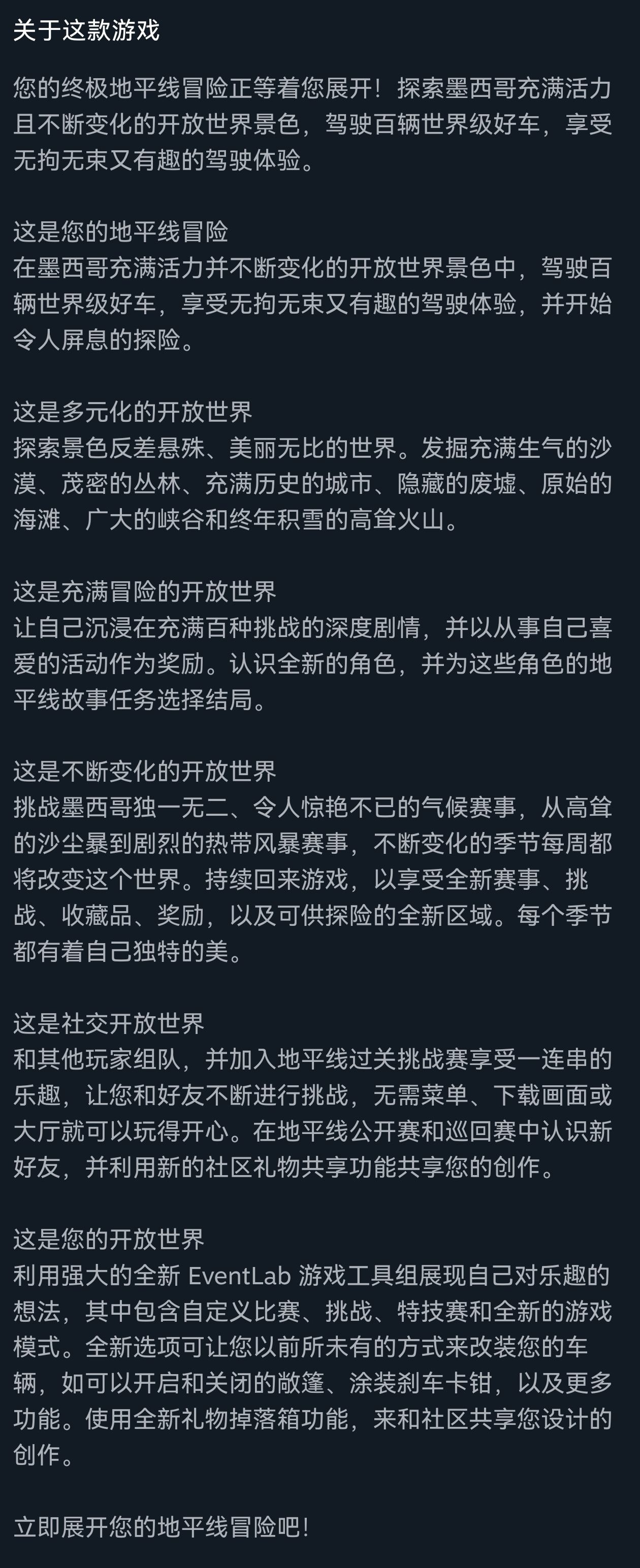 大家好,今天Steam又多了很多的折扣游戏,其中就有微软旗下鼎鼎大名的《极限竞速:地平线5》,这是一款风靡全球的赛车游戏,游戏为开放世界,游戏将带你来到墨西哥体验这里的风貌,当然,我推荐入手终极版,因为比标准版多了车包与地图DLC。