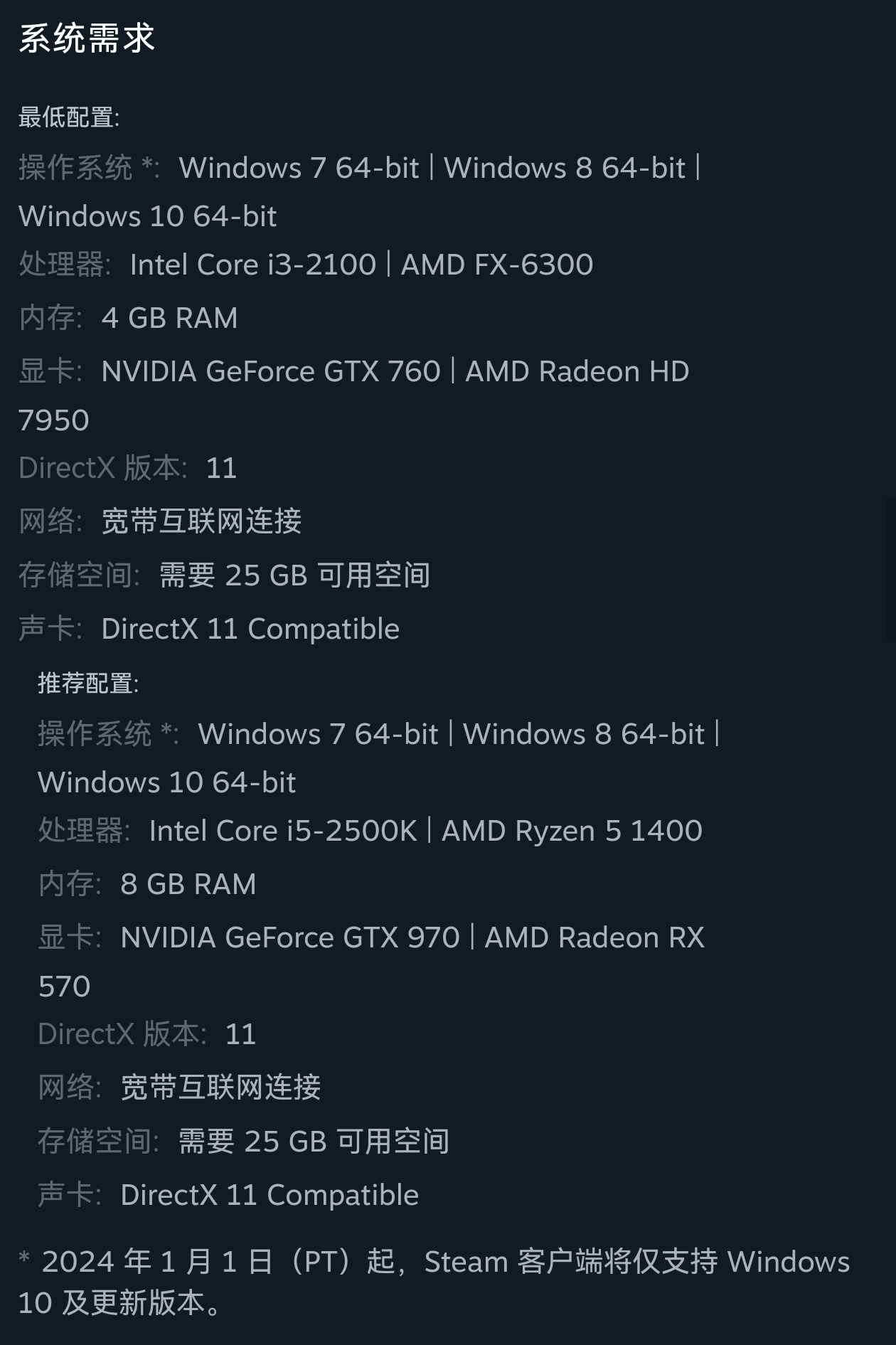 遊戲配置要求: