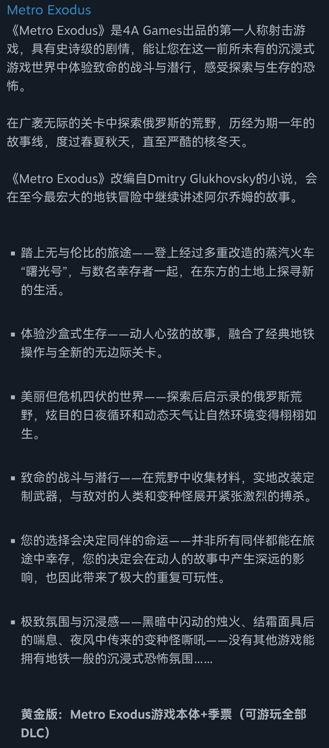 大家好,今天就是Steam一周一度的周末特惠了,每次这个时候都会有相当多的游戏进行折扣,这次进行折扣的游戏就有《地铁:离乡》,同时地铁三部曲都在打折中,而离乡为三部曲的最终章,游戏里有个知心的老婆。
