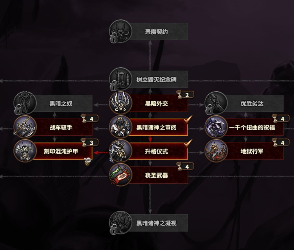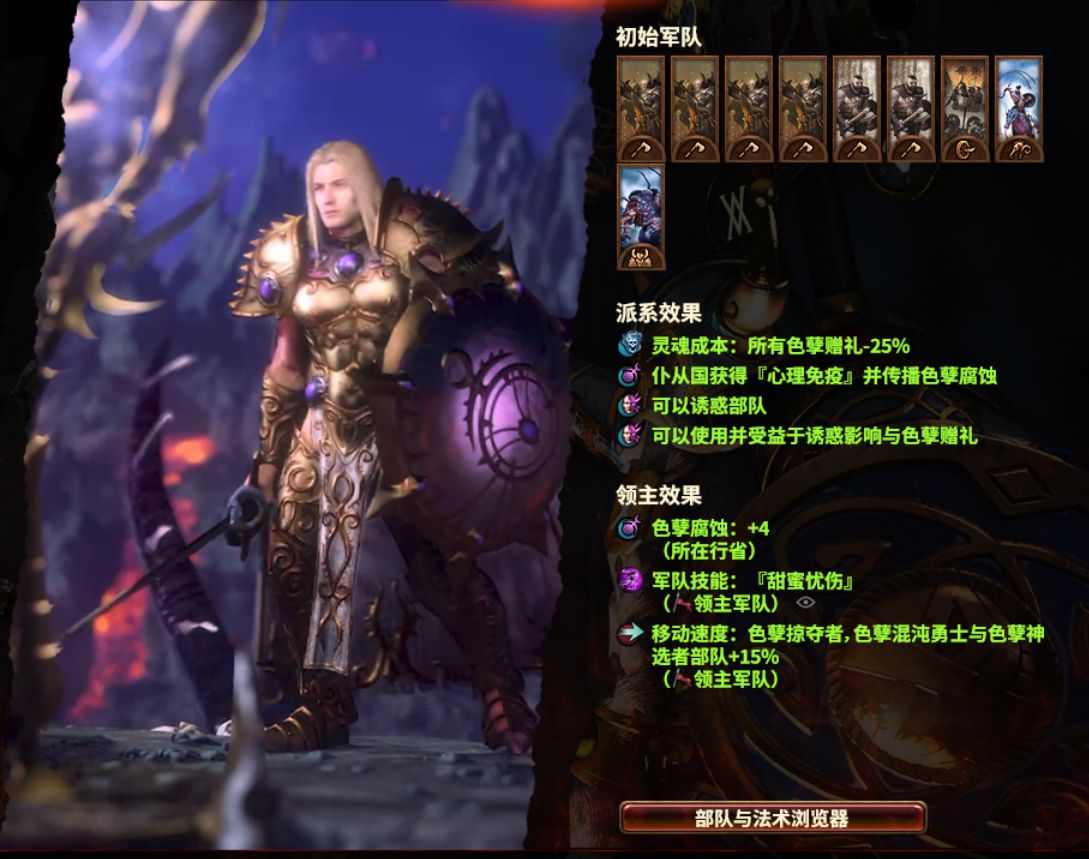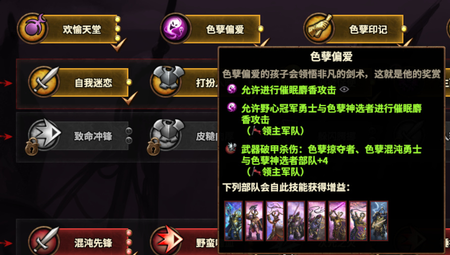 「派系线」主要是色孽属性的部队加强,特别是「野心冠军勇士」比其他混勇的加成更多。