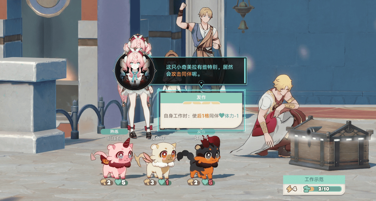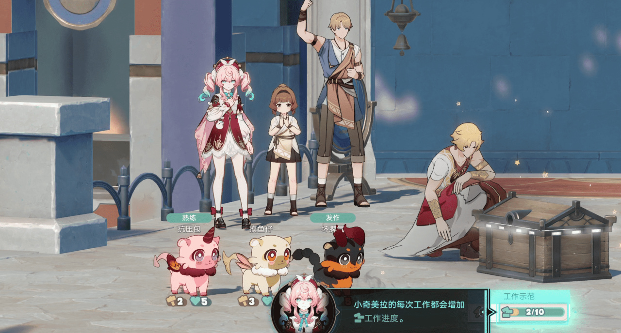 遊戲的玩法也簡單有趣,每隻小奇美拉有自己的性格,性格會影響它們的工作技能,而我們作爲管理員,需要因材施用,合理安排小奇美拉們組成一支合適的團隊,爲奧赫瑪的人民分擔工作。
