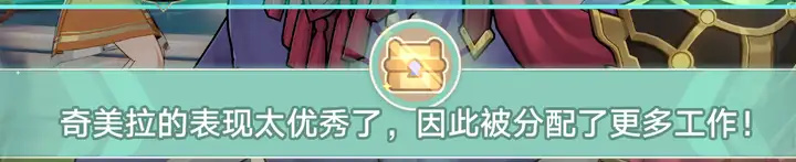 先科普下,奇美拉是奧赫瑪的特色生物,外表可愛且會幫助人們做些簡單的工作。而這次活動的劇情概括起來,就是開拓者與風堇偶然遇到一名男子正在訓斥手下工作的小奇美拉,於是出言阻止,陰差陽錯接手了這支業績排名墊底的奇美拉小隊,並帶領他們努力工作,吸納新夥伴,一路打敗所有競爭對手,最終成爲“工作冠軍“的故事。