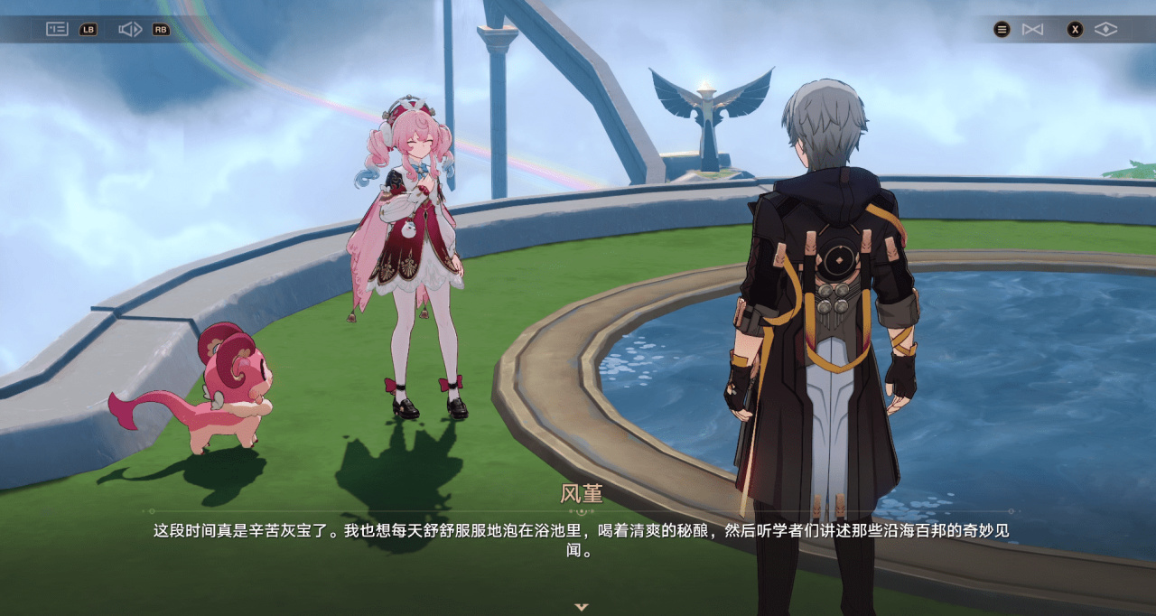 所以這個看似輕鬆幽默的故事,其實也暗含了不少打工人的無奈,但就像故事裏風堇說的,自己當然也想悠閒自在,每天泡浴池、喝蜜釀、聽故事,享受生活,但目前現實條件不是做不到嘛!