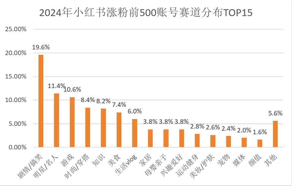 據卡思數據顯示,2024年小紅書漲粉最快的500個賬號所處的TOP15賽道,遊戲賽道佔比10.6%排名第三,表面上看很容易得出遊戲賽道博主漲勢快的特點。但實際上,幾乎所有漲粉量排在前列的遊戲博主玩的遊戲都是《蛋仔派對》。也就是說,只有這一款遊戲“起號成功”。