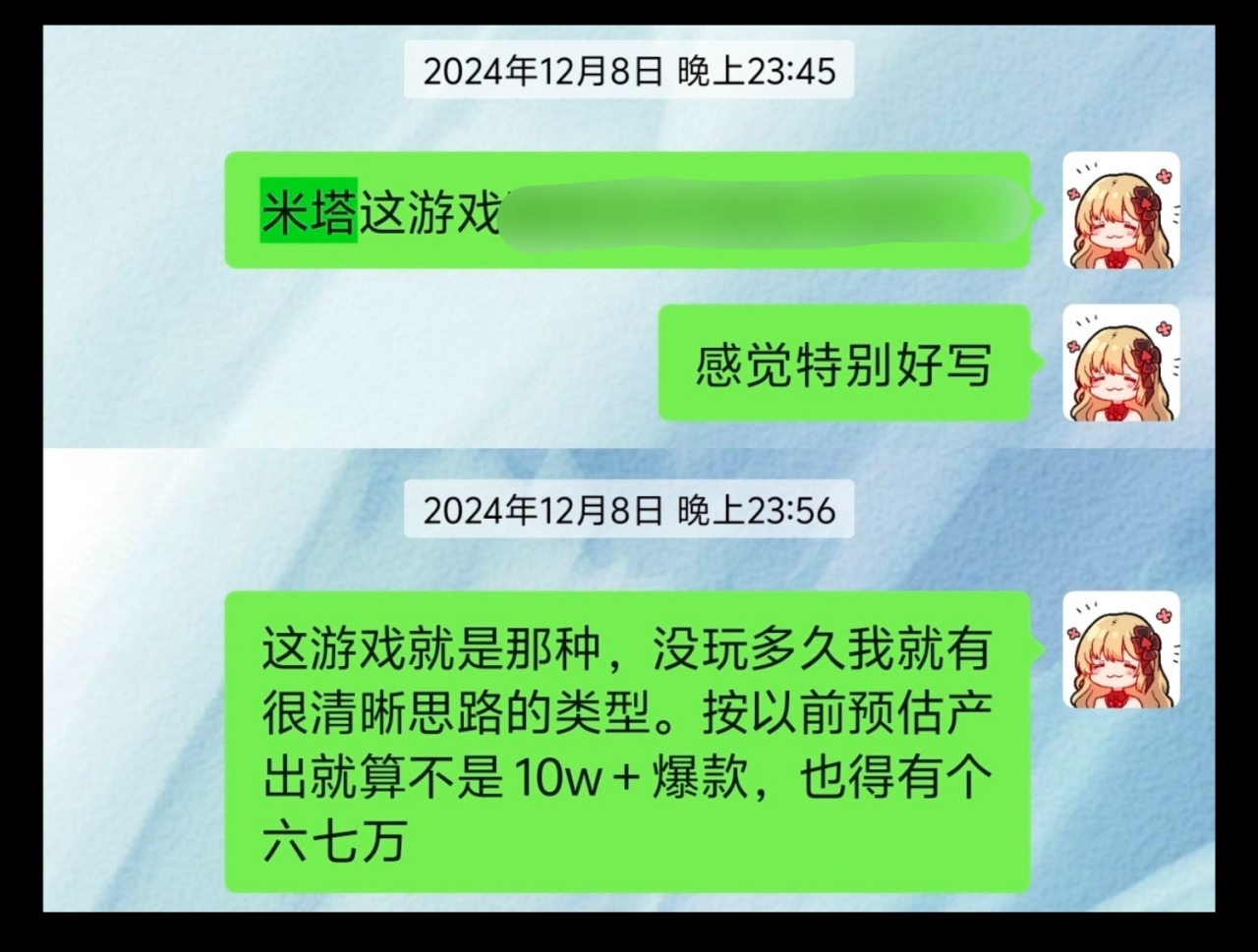 再比如《米塔》,我提前幾天玩到了遊戲,遊玩半個小時後我斷言:這遊戲會火,能出爆款文章。