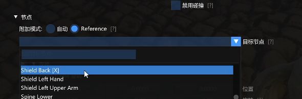 然後在目標節點處選擇要放的位置,比如這裏就選背部盾牌的位置: