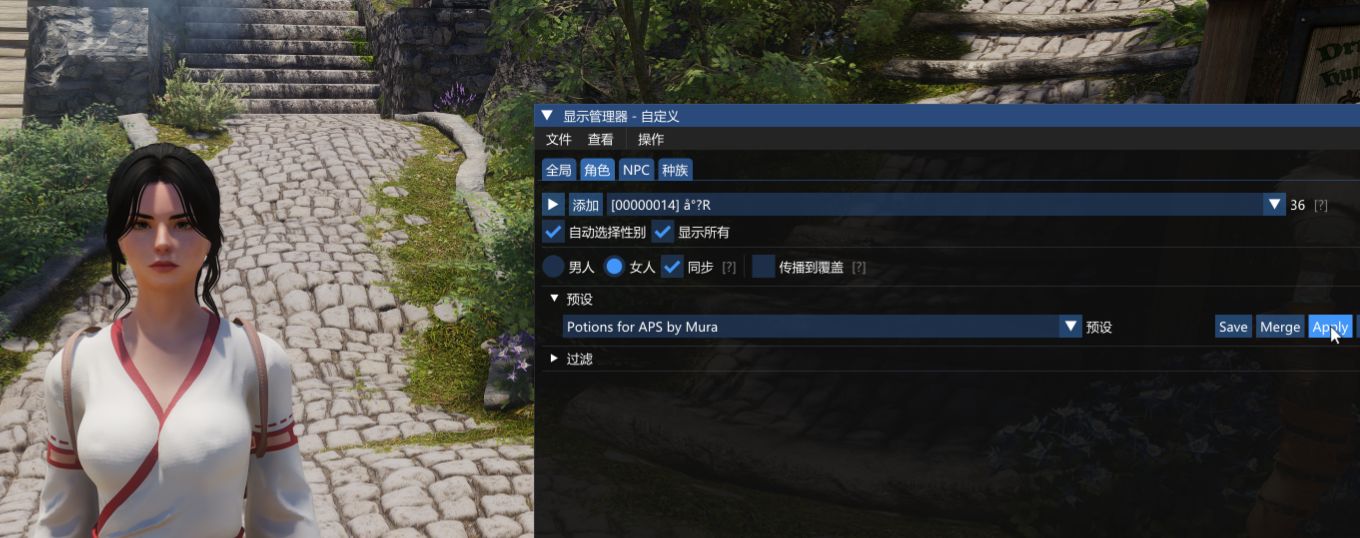 我們要調自己,所以選角色(同步:男女性同時應用),然後在下拉菜單中選擇目標,一般第一個是自己。