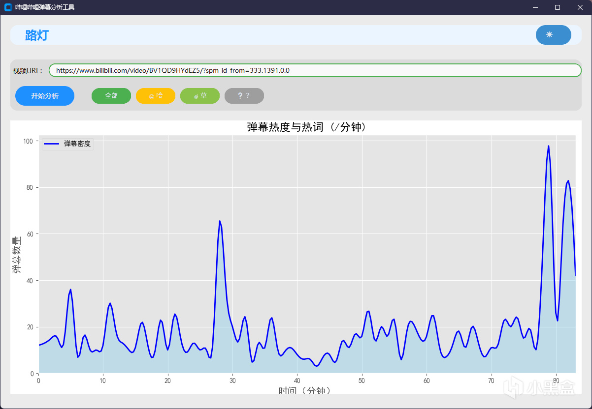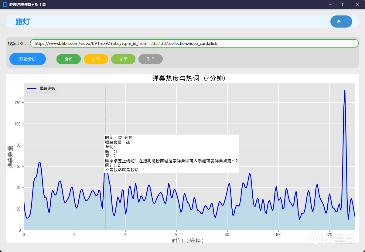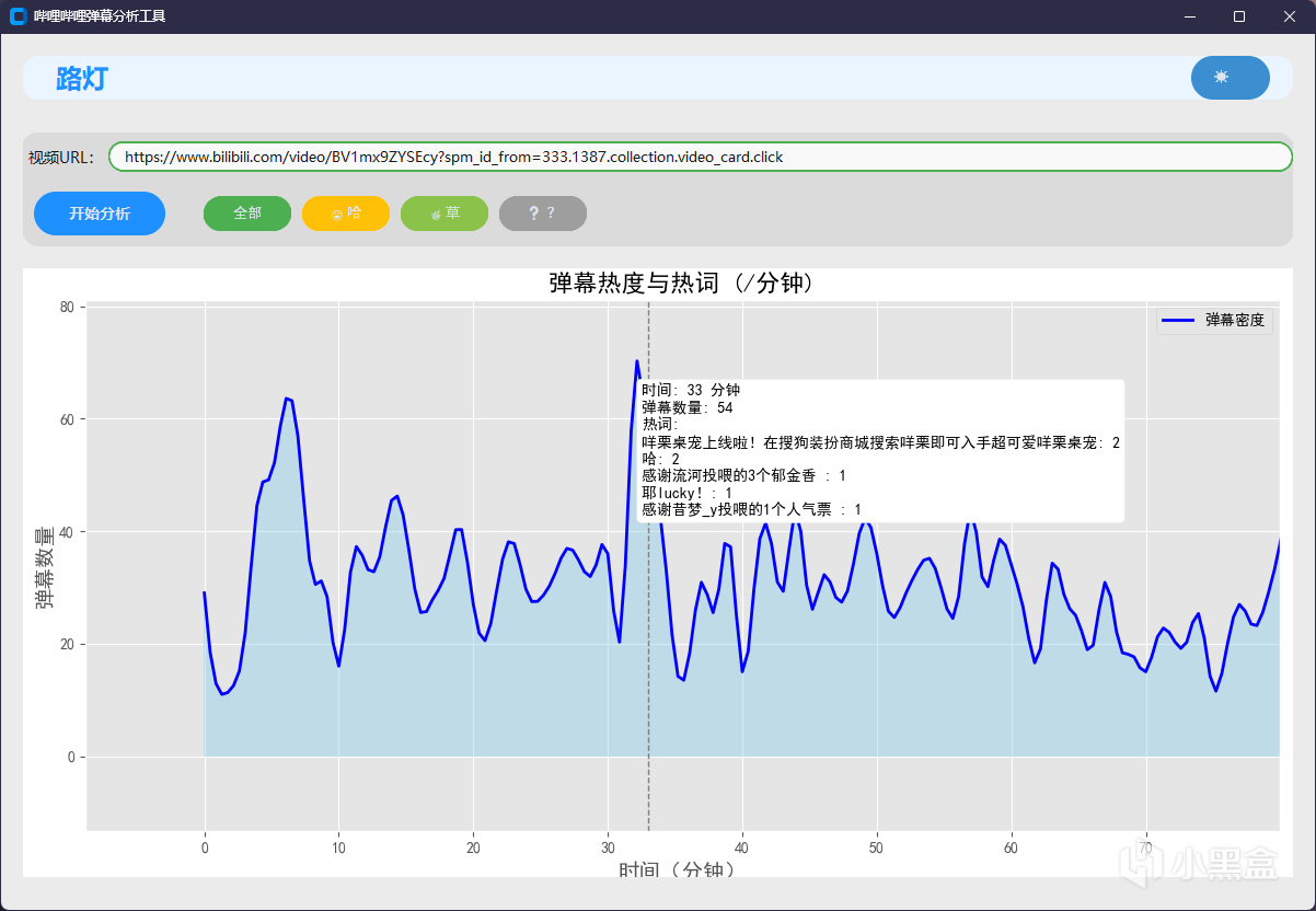 鼠标放上去之后,会显示数量前五的弹幕是什么,方便判断大致内容。