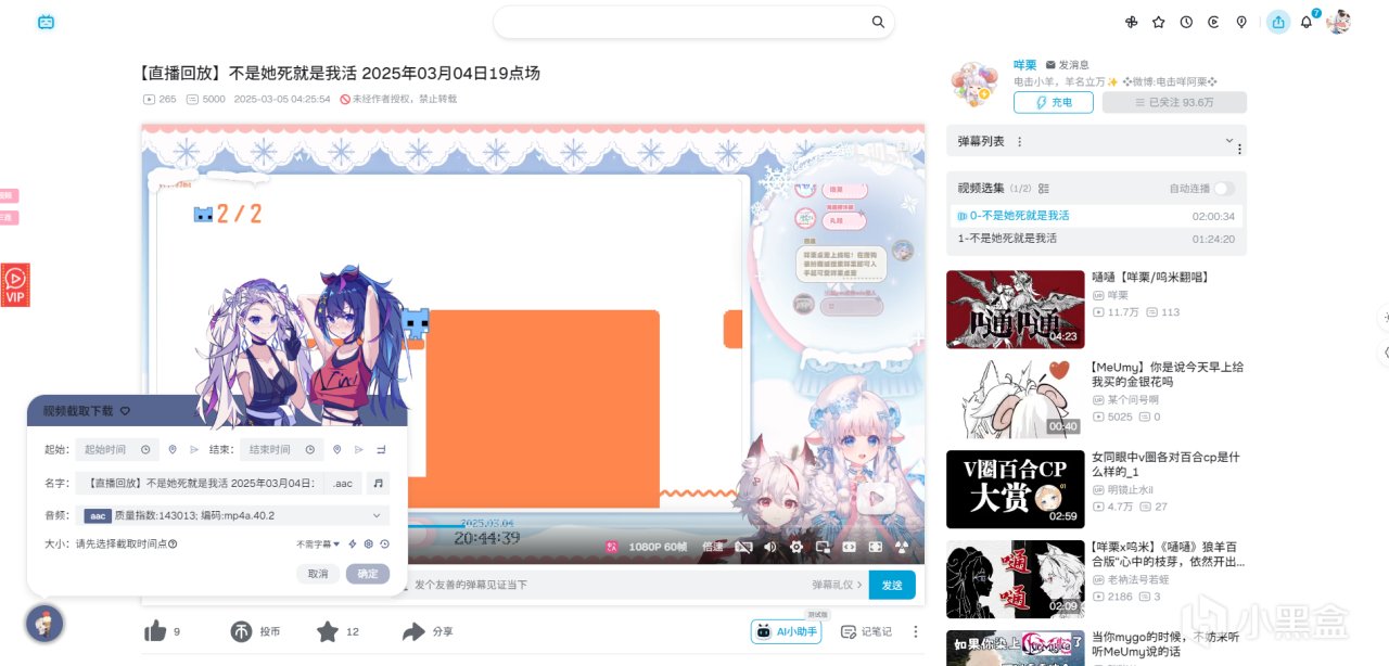 把整个回放下载下来往往费时,导入剪辑软件时也会导致卡顿,此时edge插件A-SOUL-Video-Cut解决这个问题
