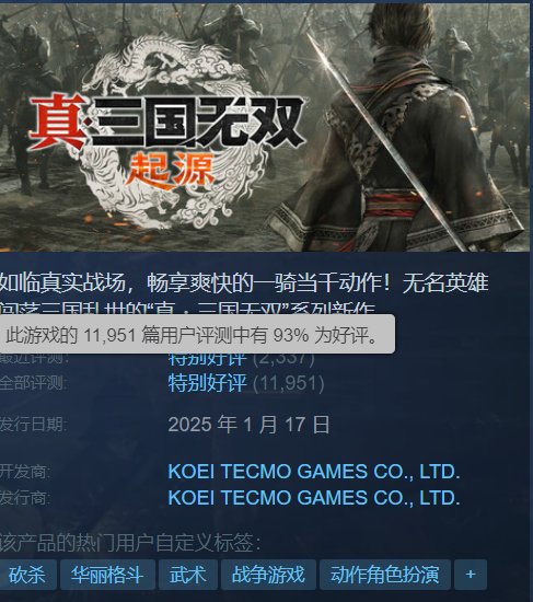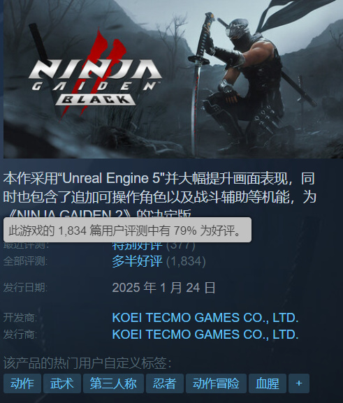 并且光荣今年开年的表现不错,《真·三国无双:起源》拿下系列最高销量并且口碑大赢特赢,小品作《无双深渊》也有84%的好评率,只是作为重置版的《忍者龙剑传:黑之章》稍显拉胯(主要是移植PC的操作适配问题)。