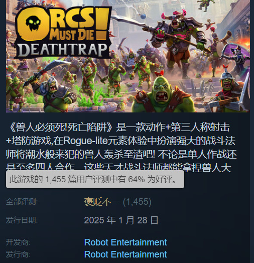MTC71,Steam好评率69%,2000评价,经典塔防IP的最新续作,但是对比前作基本换汤不换药,最实至名归的一集。