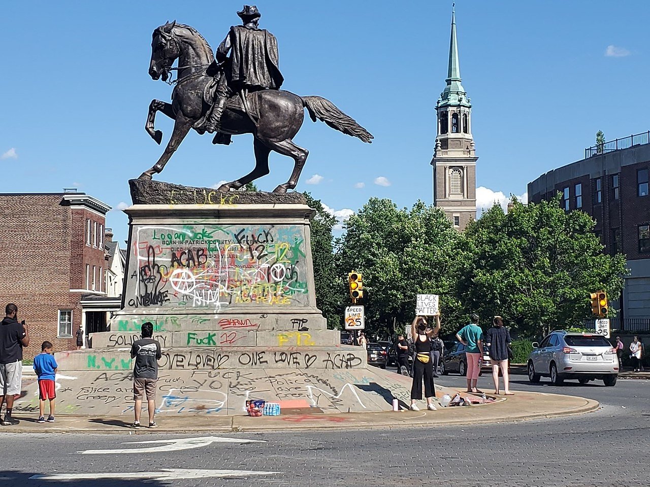 2020年5月31日,弗吉尼亞州里士滿的斯圖亞特紀念碑被塗鴉破壞。
