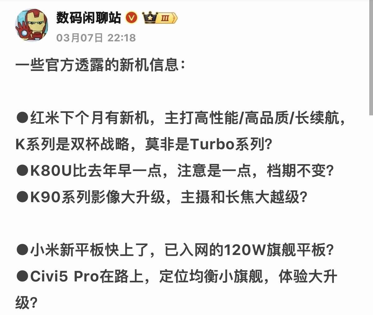 小米紅米近期新機消息彙總:全系直屏,玄戒有望入場