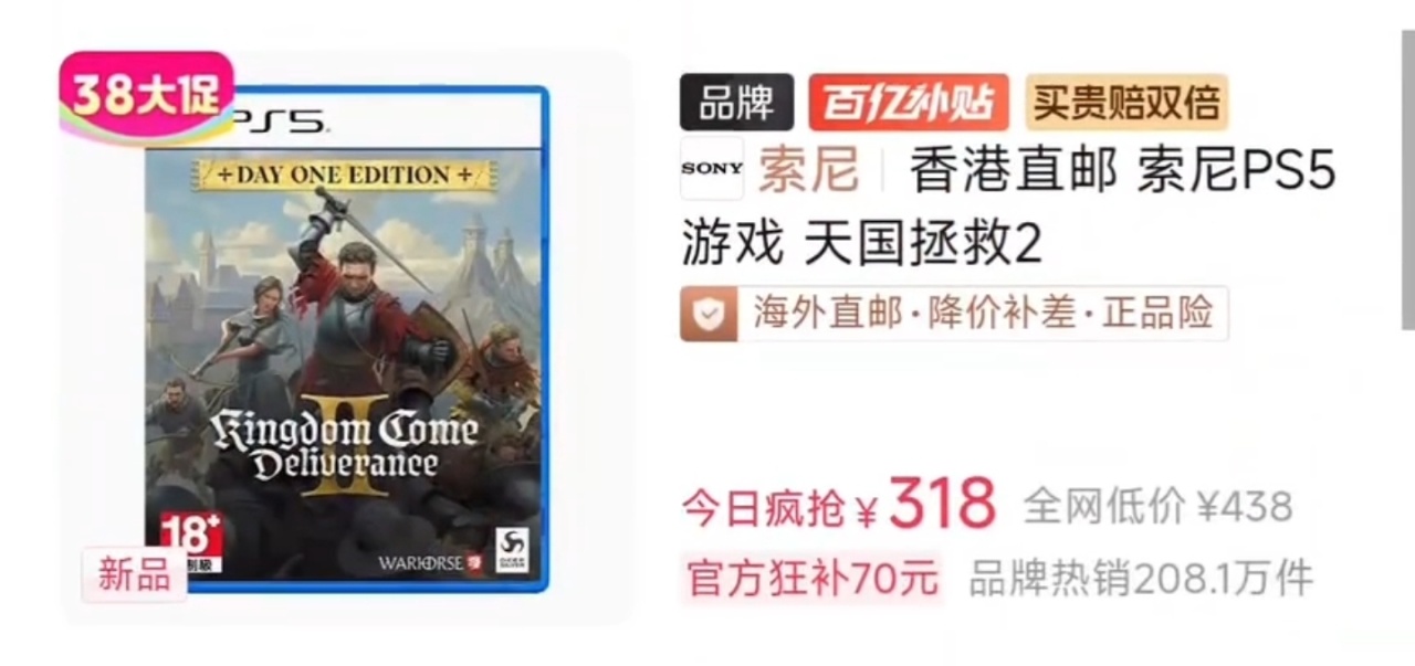 天國拯救二這遊戲,現在依然是300-50券後318,觀察了好幾天了,個人建議的話還是有券可以入,小黃魚市場現在價格都在370左右,本身遊戲品質不俗,且最低價格一個月都沒太大變化,大量鋪貨也只是把價格壓低了13塊,打完回血應該還是有的賺。