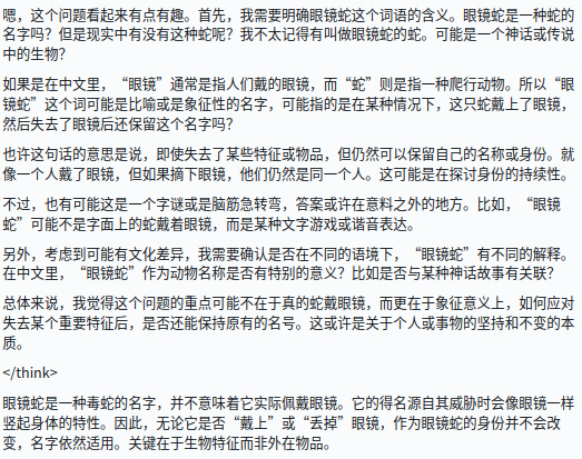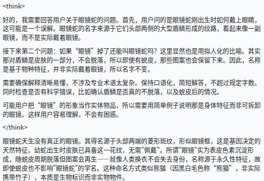 • 有一點需要注意,DSq系列模型思考內容只有</think>作爲結尾,QwQ則是由<think>...</think>包含在內,在設計思考內容的收納時需要注意這一點。如果使用streamlit設計組件,這個標籤有可能不會在回答中渲染出來,但是在回答中實際存在。