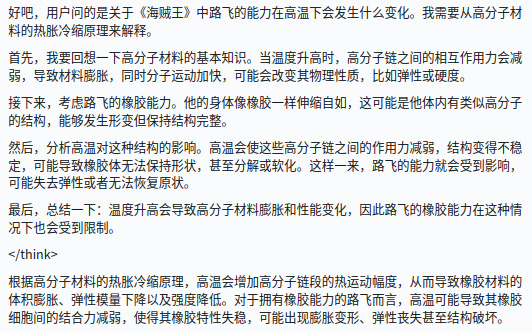 • “路飛的橡膠能力如果遇到高溫會如何變化?請用高分子材料熱脹冷縮原理解釋。”