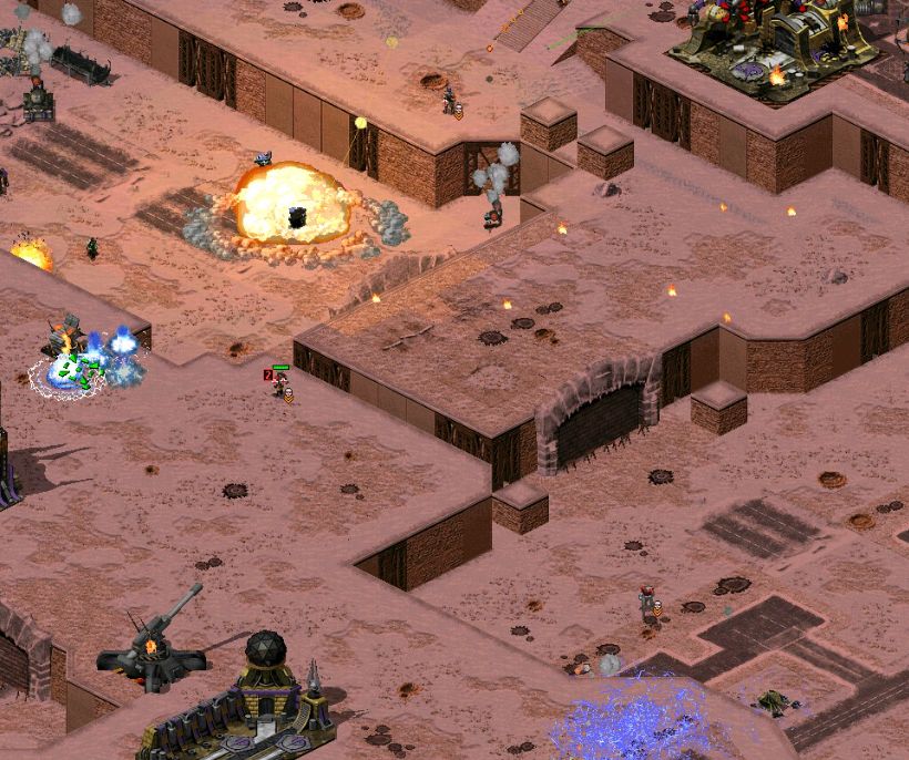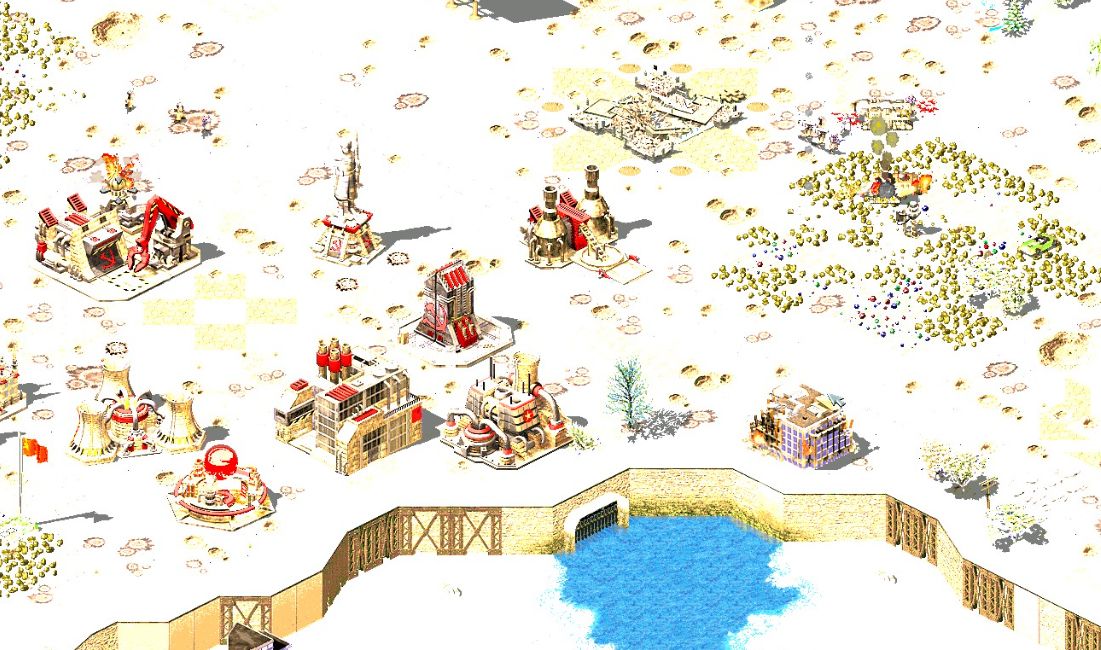 在任務開始我們會遭遇到盟軍進攻,在先前的版本中副官是這麼說的:“這裏的總部守衛有着堅實的防線,應該能堅持足夠久。”然而實際情況正如圖中所謂堅固的防線其實放了很多的油桶。盟軍不費吹灰之力迅速建立基地開始進攻。然後副官就說出火出圈的那句話: