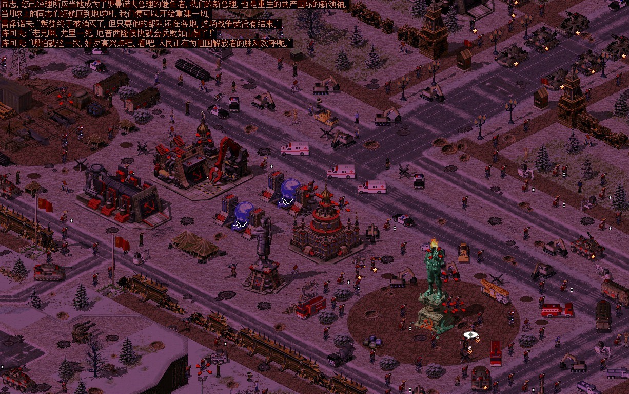 “ 你成功了,同志。當我們以爲一切努力都將付諸東流時,是你挺身而出成爲中流砥柱,終結了尤里的陰謀。叛徒已被翦除,祖國已被光復。現在是時候重建世界革命的大業了,而你將會成爲革命的新領袖。蘇維埃萬歲!