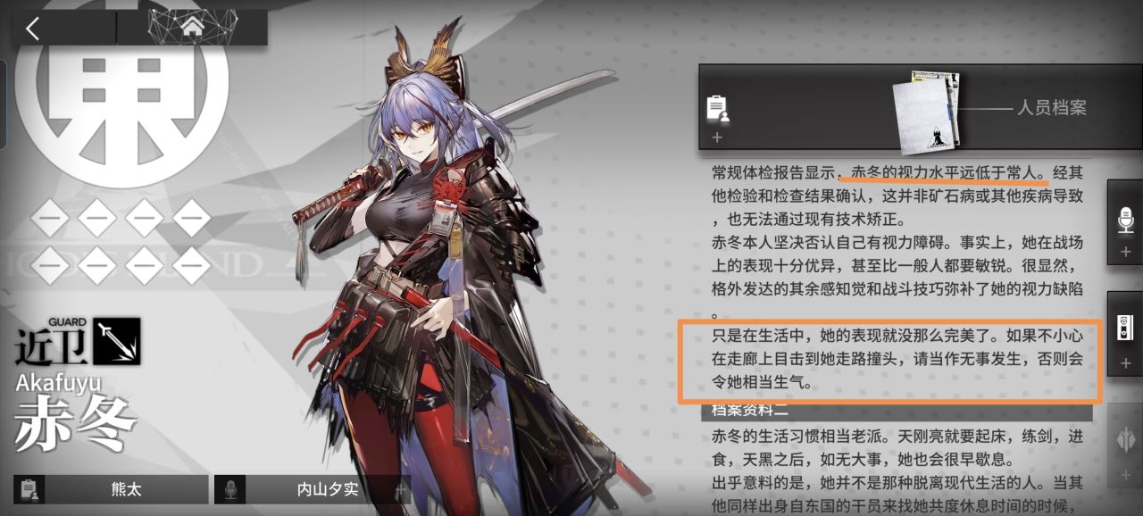 ⑤幹員赤冬的視力不太行,就是不知道近視還是遠視。