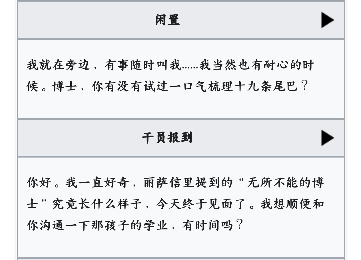 ③忍冬(也就是鈴蘭的媽媽)說過一口氣梳理19條尾巴的事情。此事在123羅德島中也有記載。