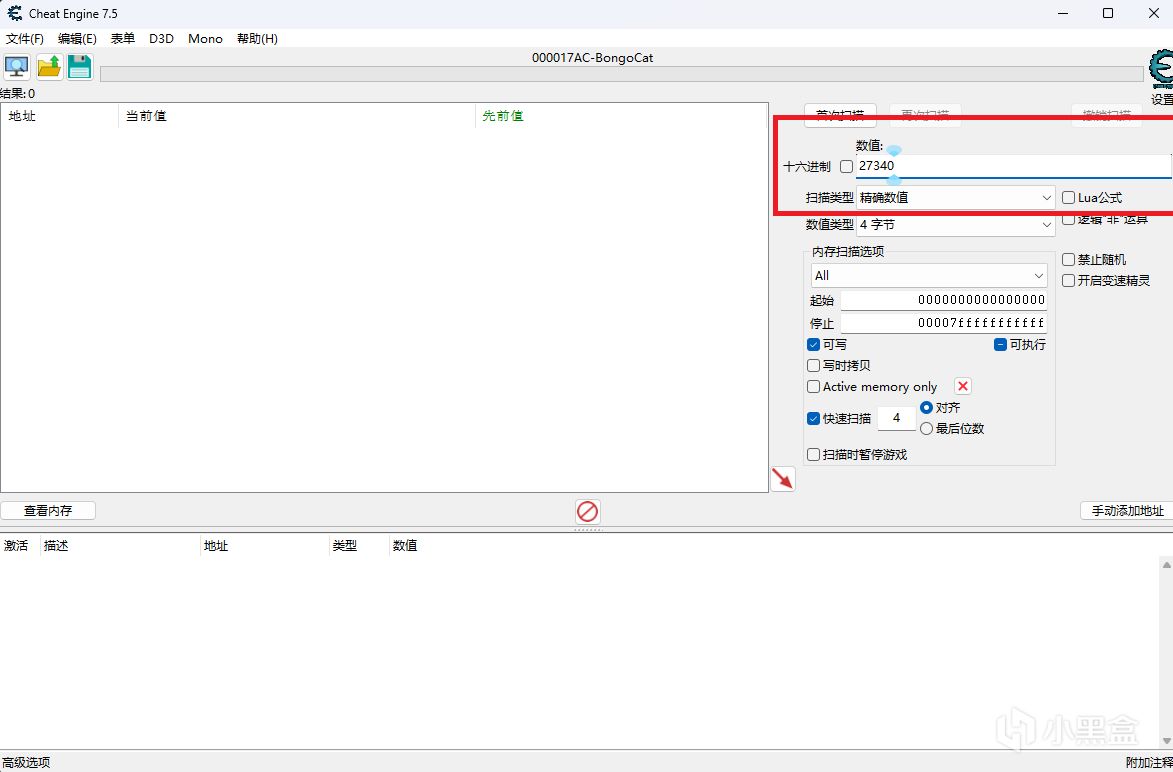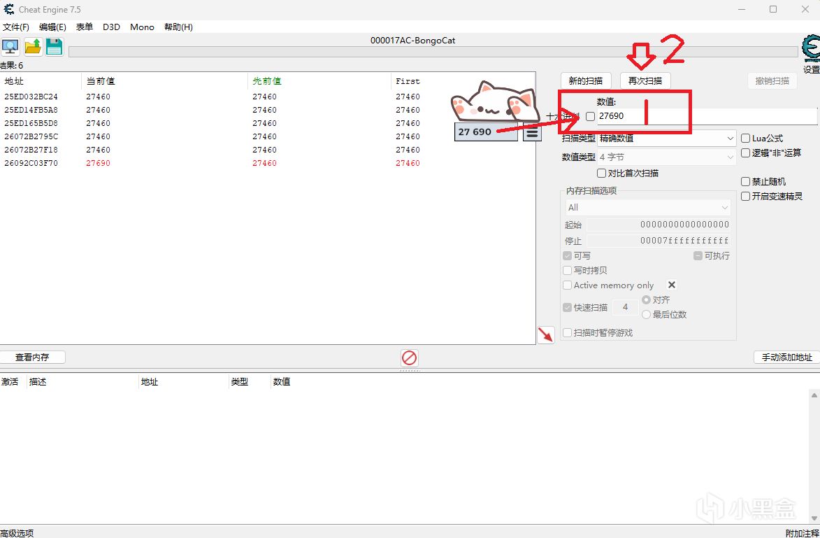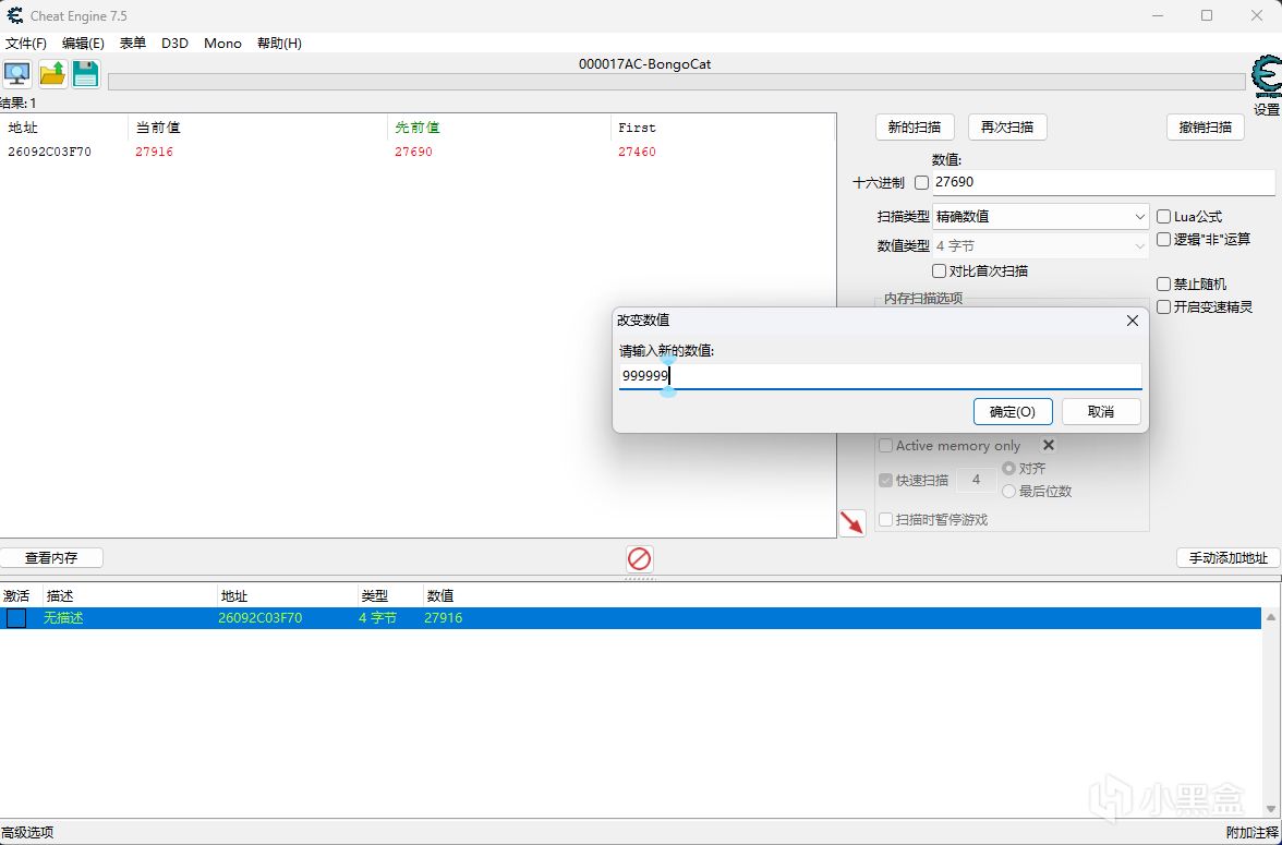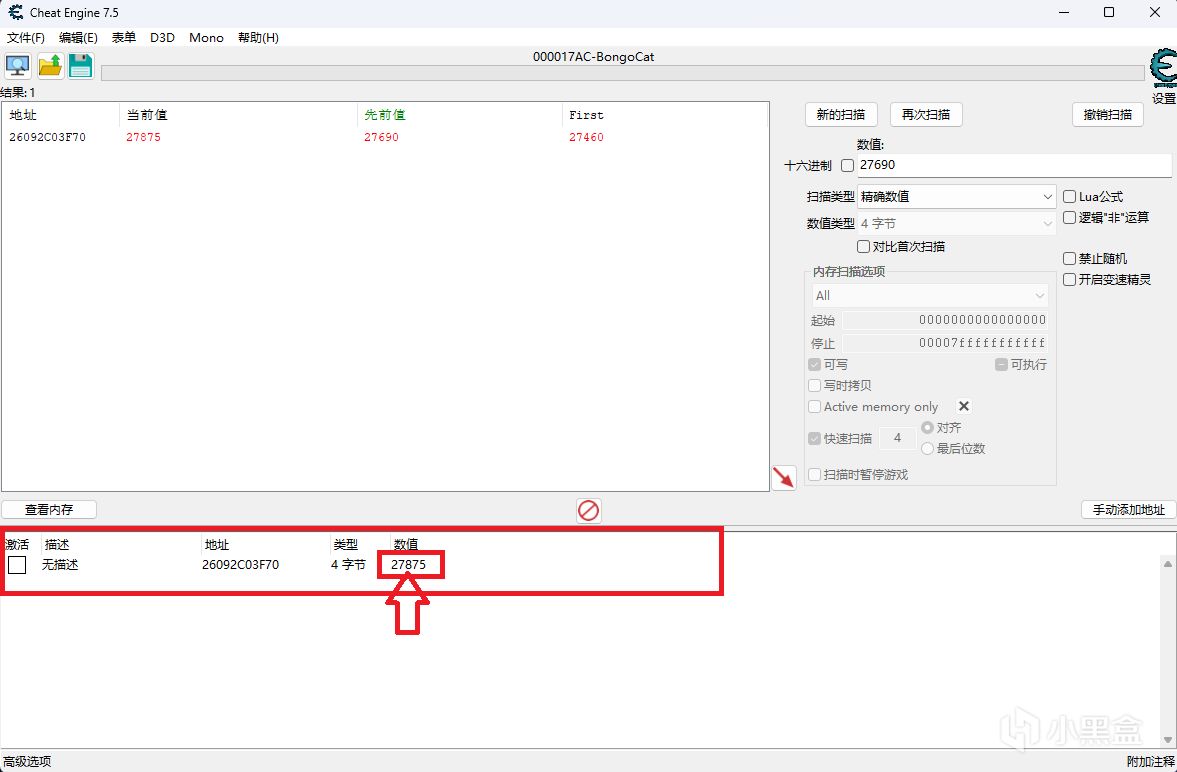 可以看到,這次只顯示 了一個地址 ,我們雙擊它,此時我們在下方雙擊‘數值’來修改數值
