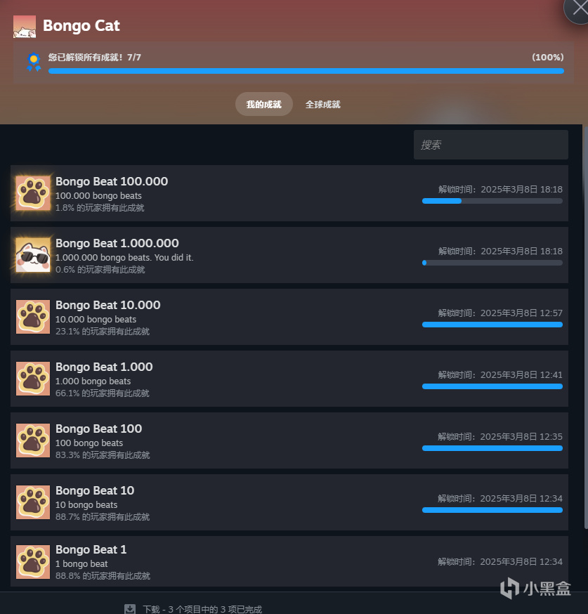 同時在steam上擁有7個成就,只要點擊1000000次即可獲得全成就