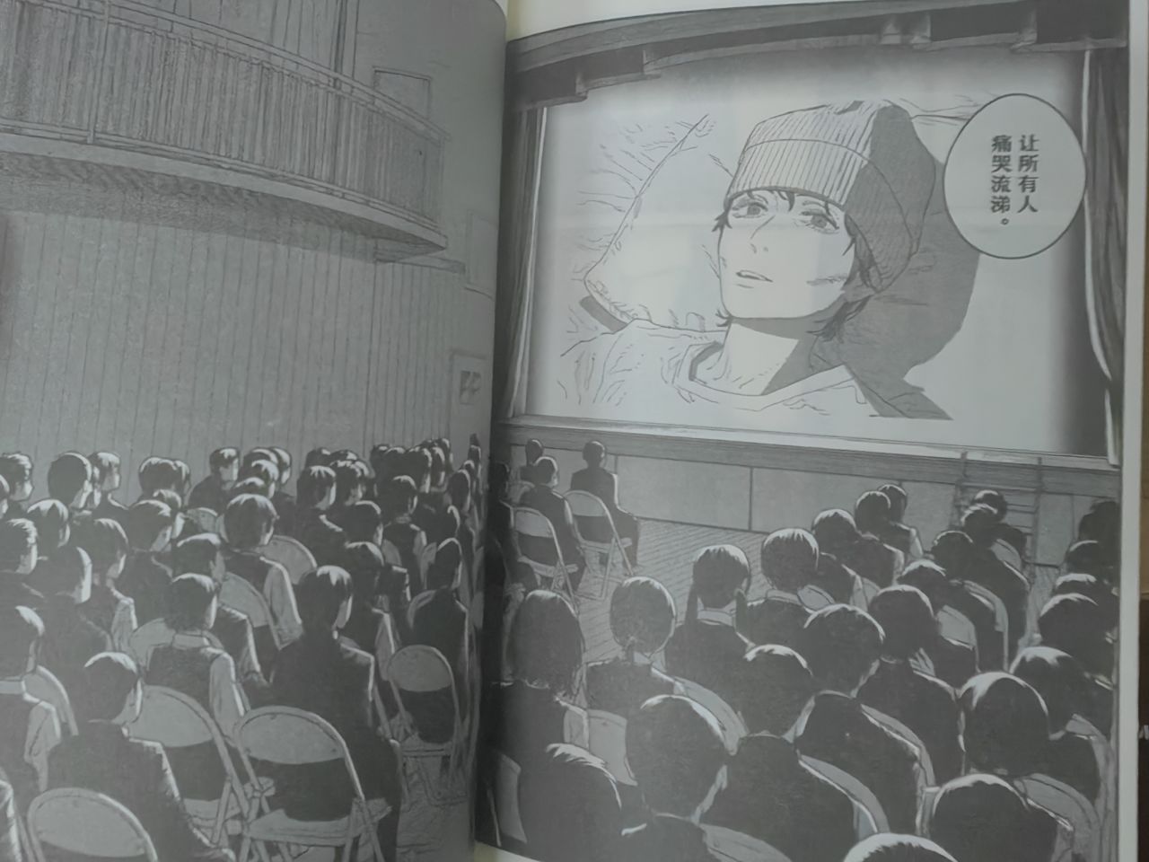 現實中的死亡與電影中呈現的美好片段形成反差,這種反差模糊了真實與虛幻的邊界。讀者難以分清哪些是絕對真實發生的,哪些是優太在情感驅動下構建的。這促使我們思考在記憶與情感濾鏡下,真實究竟爲何物,以及虛幻的影像如何影響我們對真實的認知,或許在某些時刻,虛幻的情感體驗反而比現實更能觸動人心、接近生活本質。假的又如何,一定也有它存在的價值,或許比真品更甚!這種戲中戲中戲的虛幻感真是神了。
