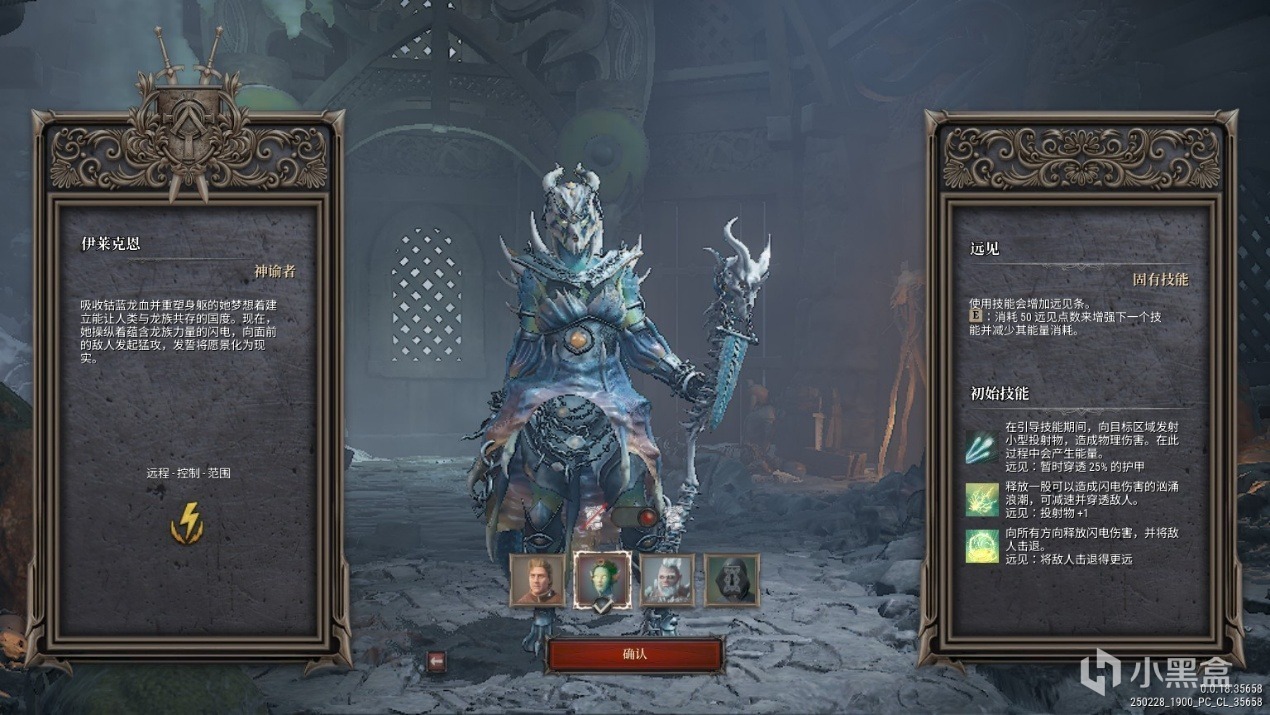 神谕者:吸收钴蓝龙血并重塑身躯的她梦想着建立能让人类与龙族共存的国度,现在,她操纵着蕴含龙族力量的闪电,向面前的敌人发起猛攻,发誓将愿景化为现实。攻击属性电,战斗定位远程、控制、范围。固有技能——使用技能会增加远见条,消耗 50 远见点数来增强下一个技能并减少其能量消耗。