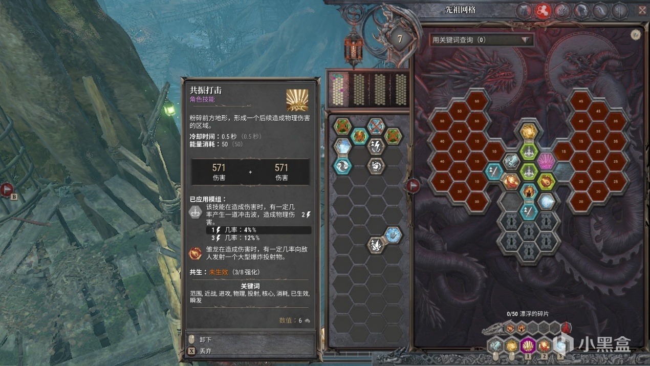 在角色页面,技能有一个名为“先祖网格”的功能,专门用于(技能)碎片的管理。所谓的碎片,由六边形的小方格组成,有三大类——角色(主动)技能、(被动)强化和雏龙技能。