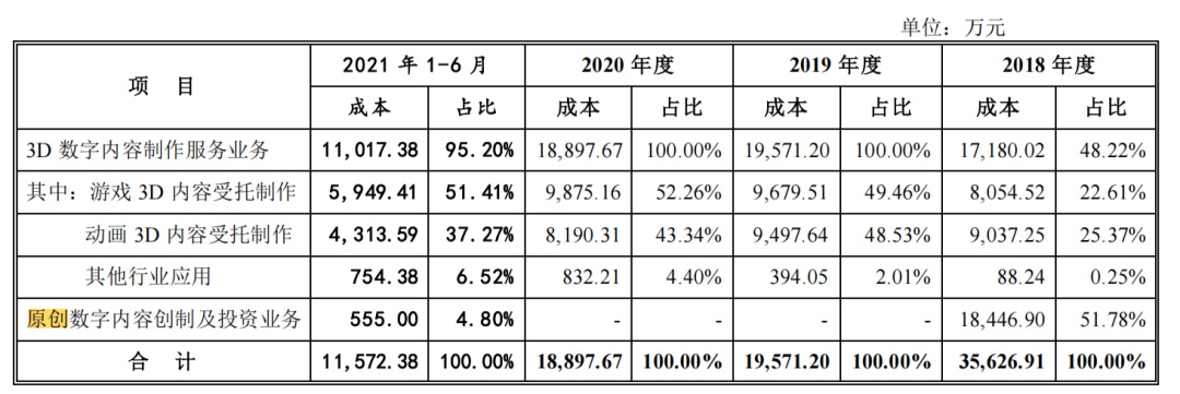 招股书中称,2018年公司对经营战略进行了调整,除《故宫里的大怪兽》项目外,不再开展新的原创数字内容和原创投资业务——这使得对应收入比例从2018年的18.34%,下降至2019年的0.16%;原创成本从2018年的51.78%变成了后续两年零投入。
