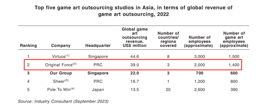 在美术外包商唯晶科技的上市招股书中,原力作为其竞品公司出现在「亚洲市场游戏美术外包商」第二名的位置,仅次于维塔士。
