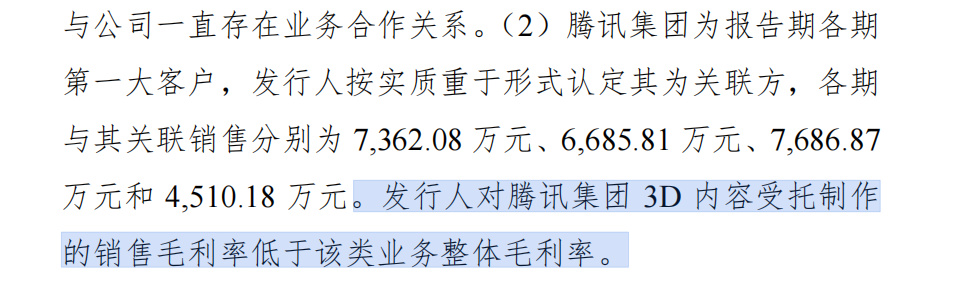 原力的上市问询函也显示,公司对腾讯集团外包内容的毛利率,低于该类业务的整体毛利率。