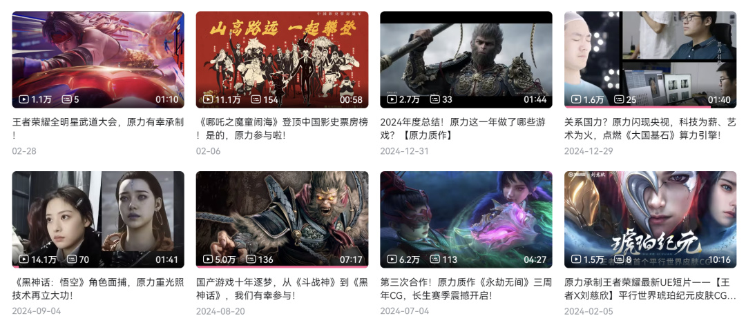 你会发现这几年,原力乐于在媒体平台分享合作案例,包括《黑神话:悟空》《战神5:诸神黄昏》《永劫无间》《FreeFire》《英雄联盟手游》等热门项目,每年还会更新承制作品的合集混剪;