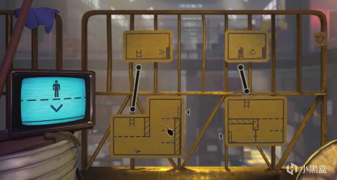 其他遊戲的教學引導:《The Pedestrain》使用畫面中的電視機,教會玩家應對新機制的操作方法。