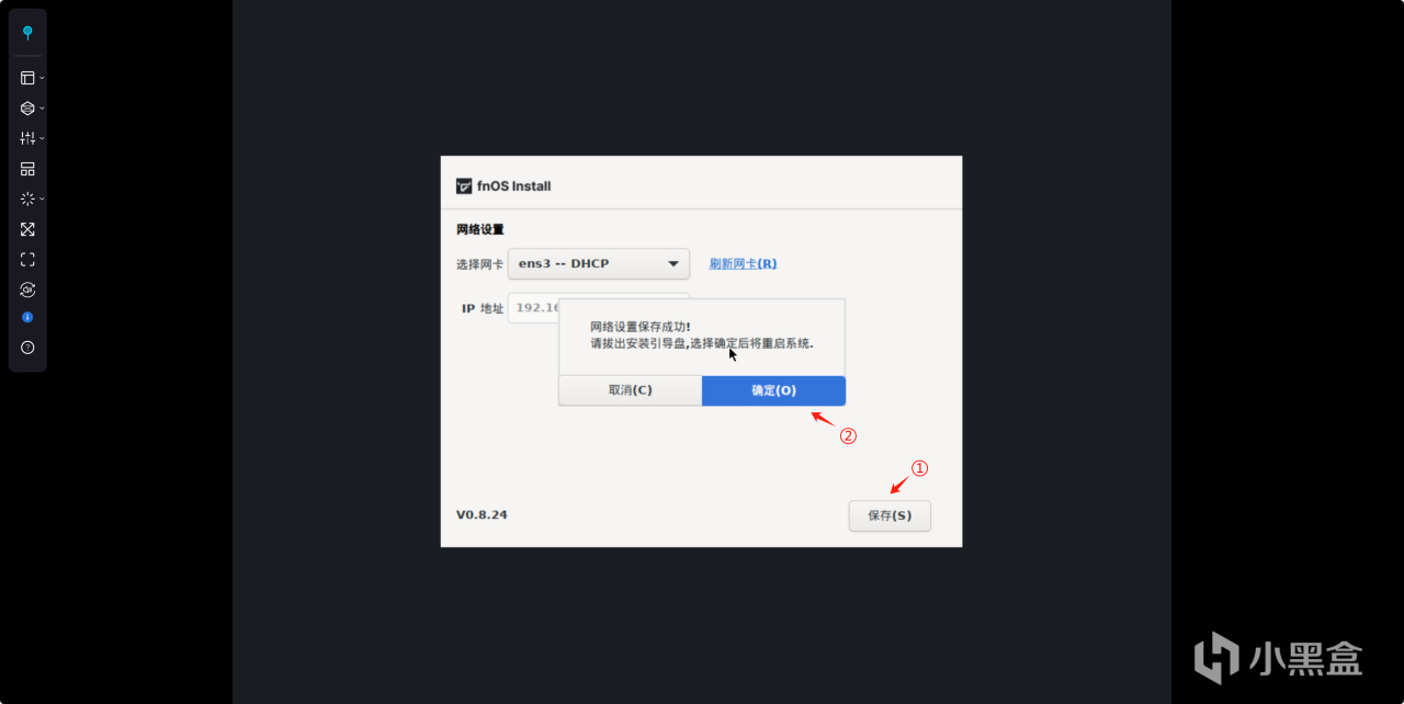 網卡就用默認的設置,點擊“保存”按鈕,出來的窗口再點“確定”,然後等着就行......