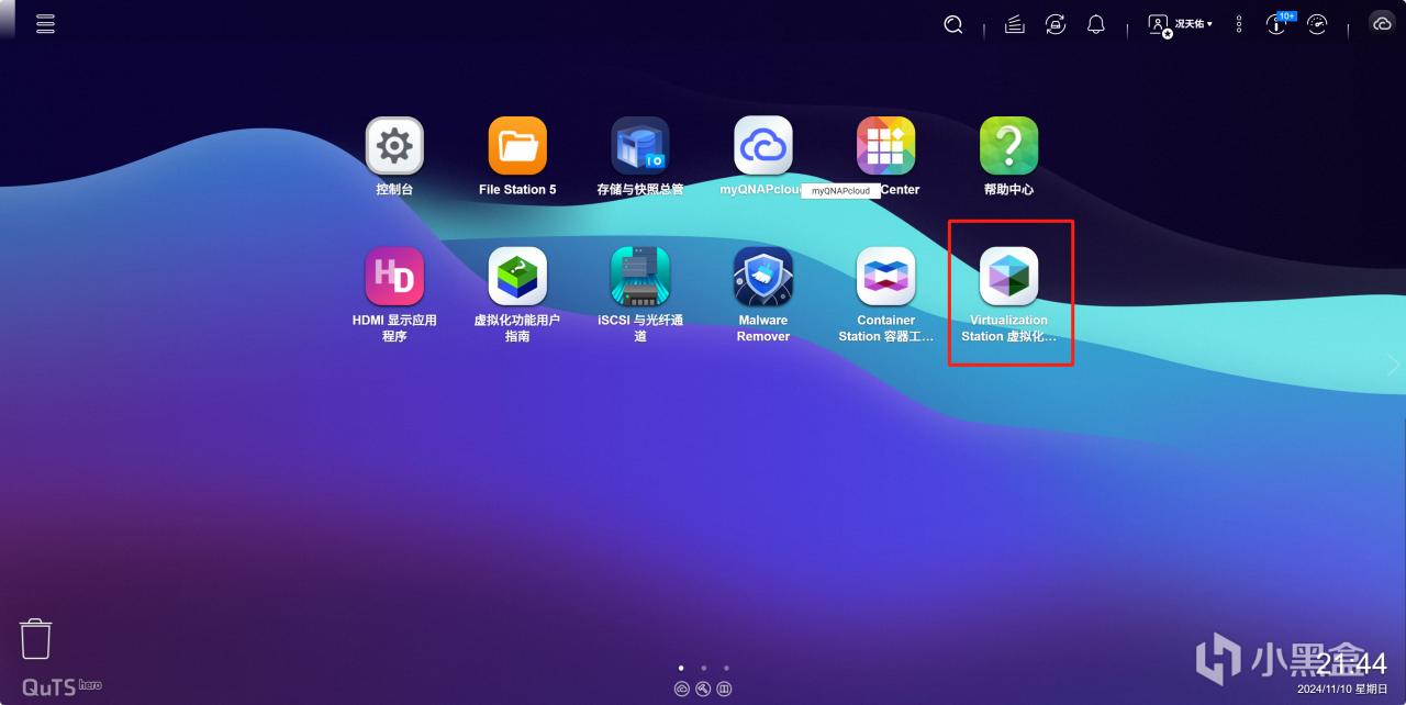 安裝完成後,在NAS界面上點擊“Virtualization Station 虛擬化工作站”圖標,進入使用。