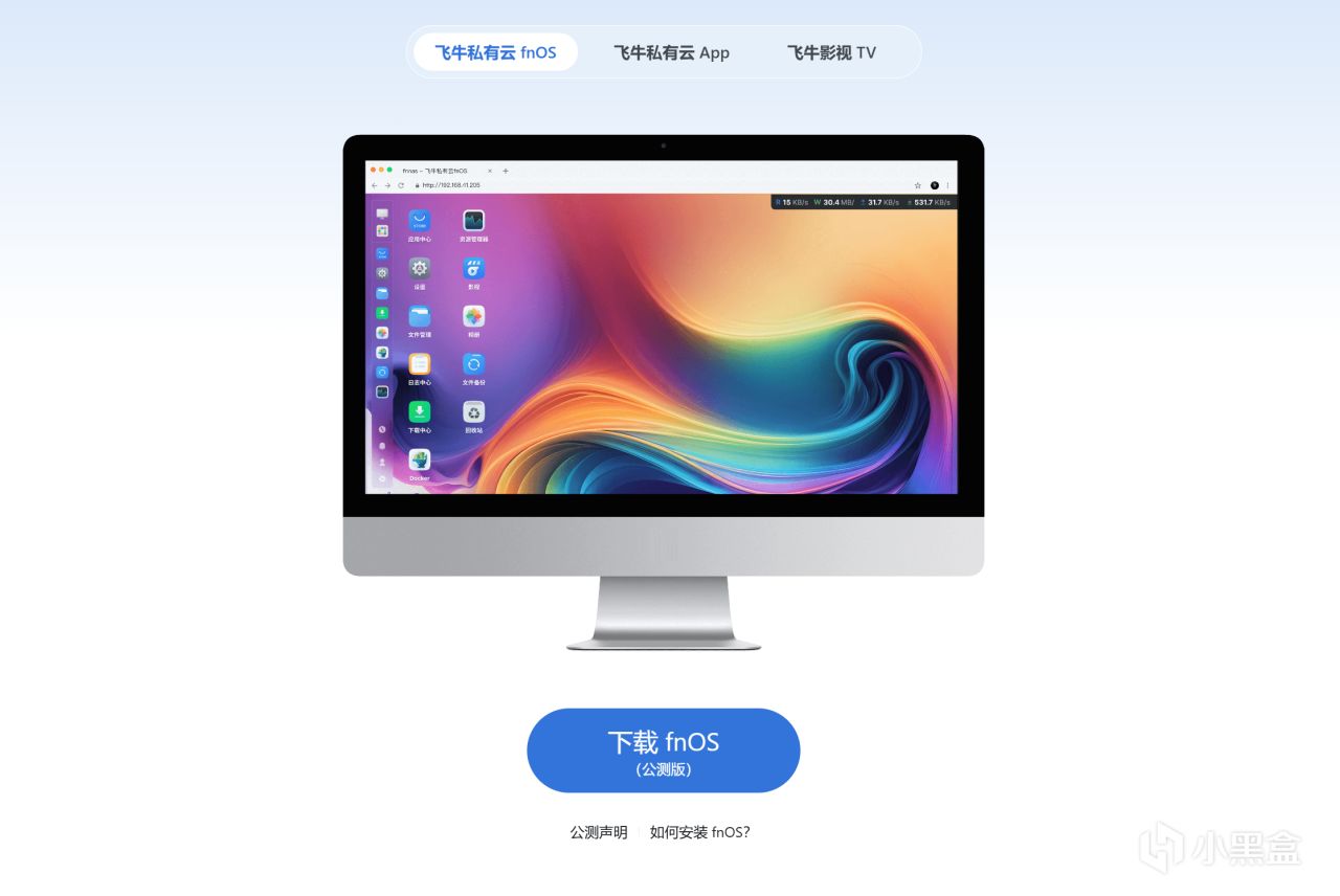 首先打開飛牛官網的下載中心,把最新的fnOS鏡像文件下載下來。飛牛OS目前提供的版本是公測版,測試用的版本號爲fnos.0.8.39-685。
